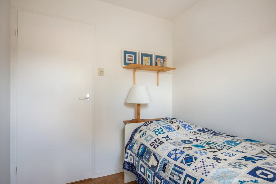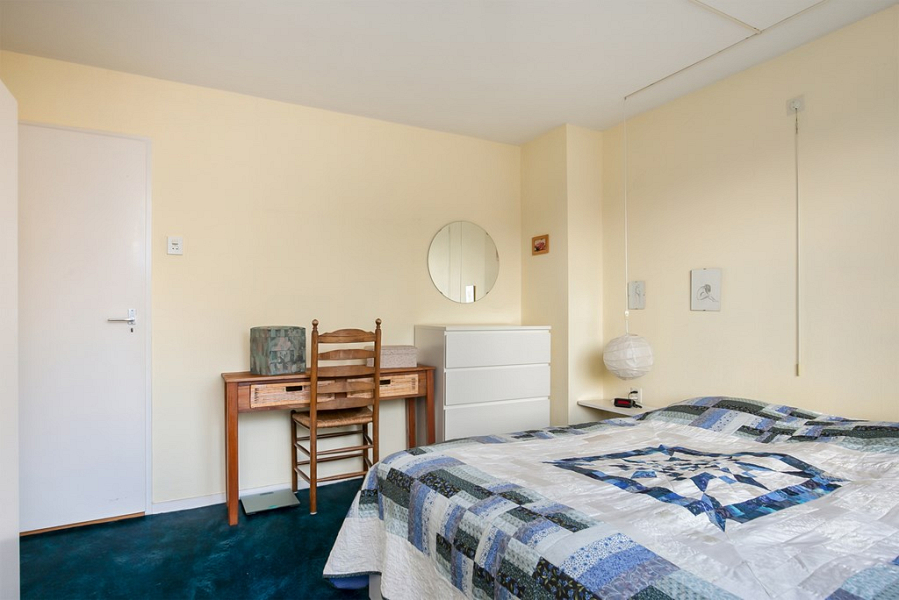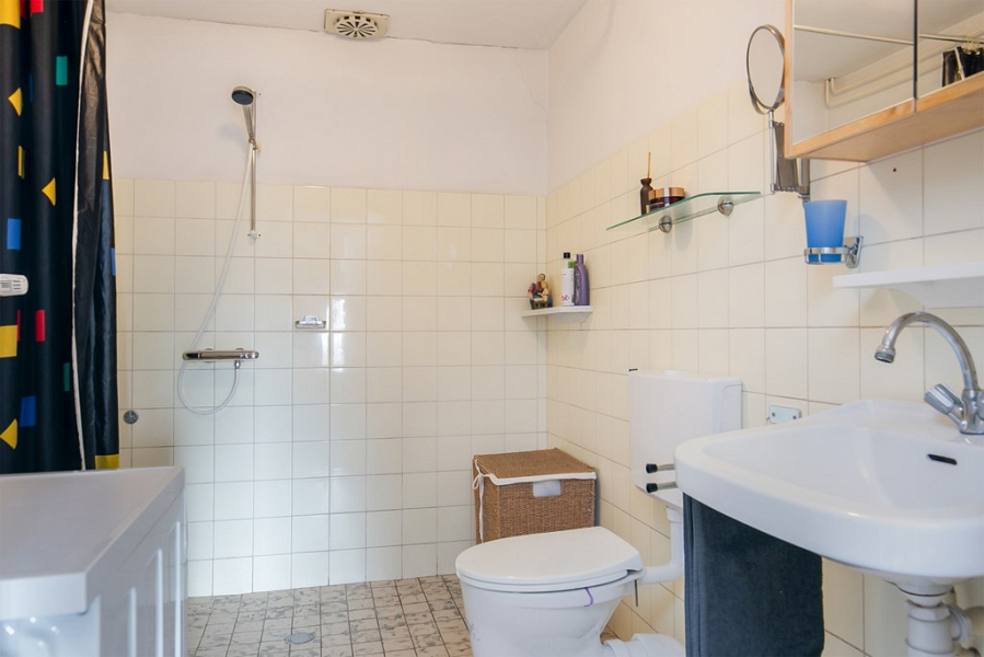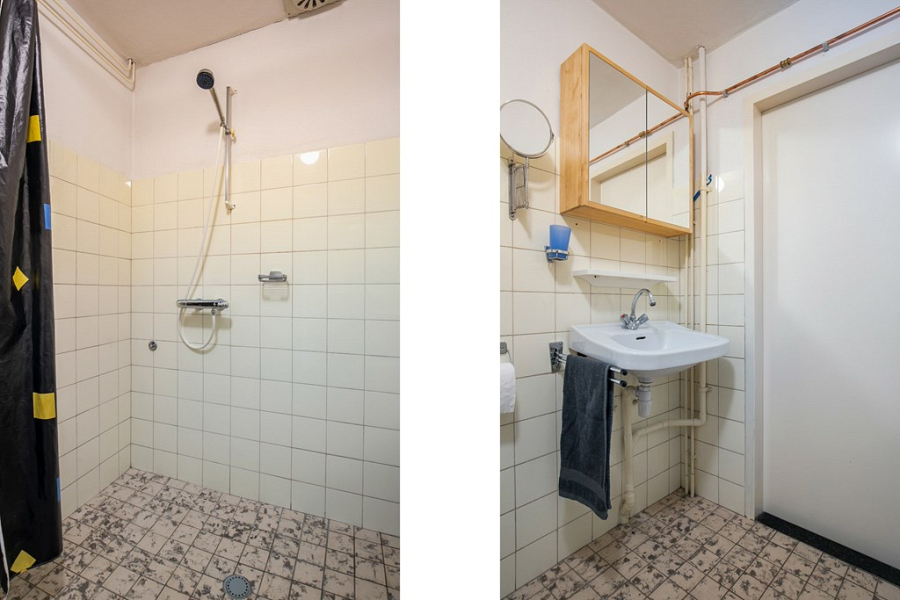 Vanuit één slaapkamer is het balkon aan de voorzijde van de woning te betreden. De badkamer is eenvoudig uitgevoerd en voorzien van een doucheruimte, 2e toilet en wastafel. Tevens zijn de aansluitingen voor het witgoedapparatuur in de badkamer aanwezig.
