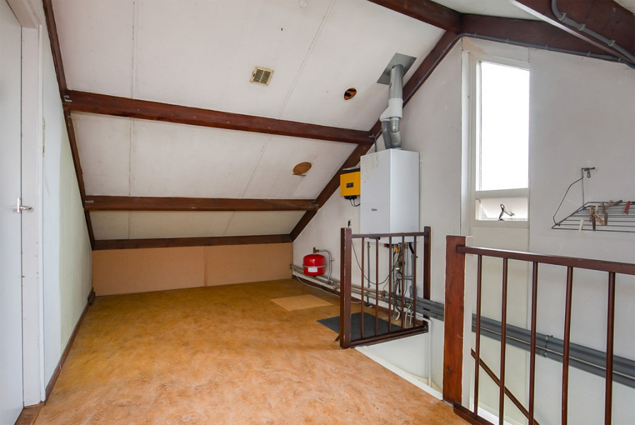 De tweede verdieping is via een vaste, dichte trapopgang te bereiken. Op de voorzolder zijn de CV opstelling en omvormer gesitueerd. Vanuit de voorzolder kom je uit in de 5e slaapkamer met dakraam en vaste inbouwkasten.