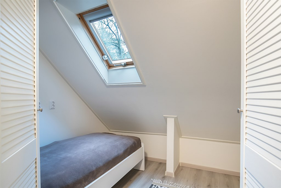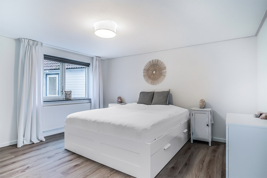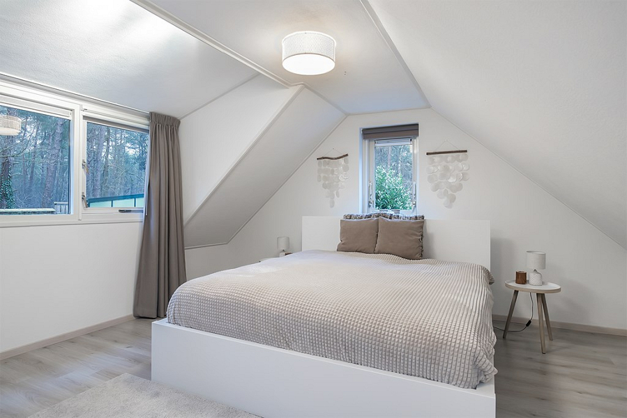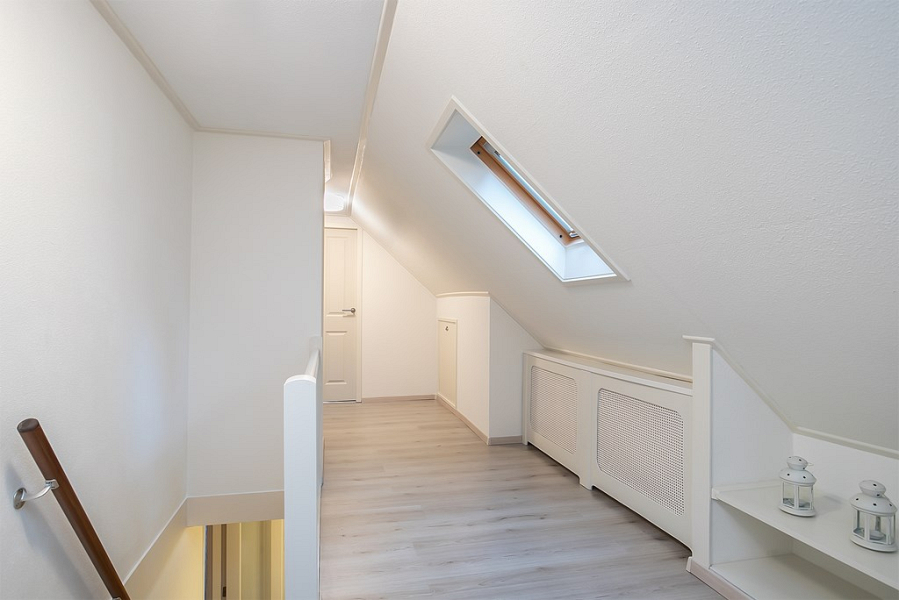 Via de trapopgang, kom je uit op de overloop van de eerste verdieping. Hier bevinden zich 2 grote slaapkamers, 1 kleinere slaapkamer en een walk-in closet.