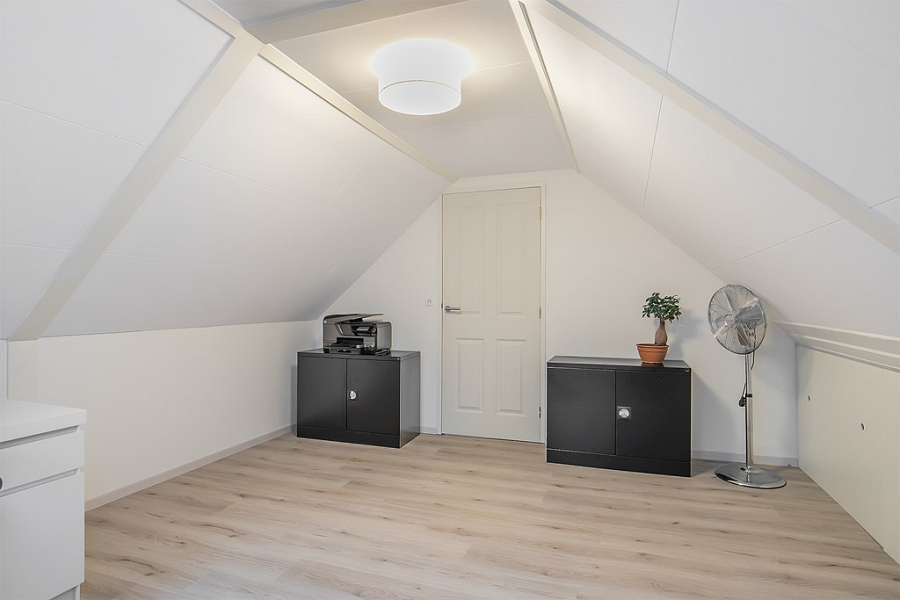 Je komt binnen in de hal, met eigen toiletruimte en een keukenblok voorzien van een close-in boiler. Vervolgens zijn er 2 grote afzonderlijke ruimtes. Eén ruimte is nu in gebruik als behandel-/spreekkamer, de andere als groepsruimte. Vanuit de hal is er ook toegang, middels een vaste trap, naar de vliering (18m2), welke als opslagruimte dient maar tevens mogelijkheid biedt voor een andere invulling naar wens.