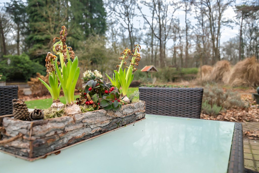 En last but not least, de tuin. Een zeer fijne plek waar ieder seizoen wat gebeurt en die met liefde door de huidige eigenaren is verzorgd.