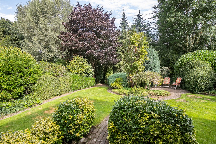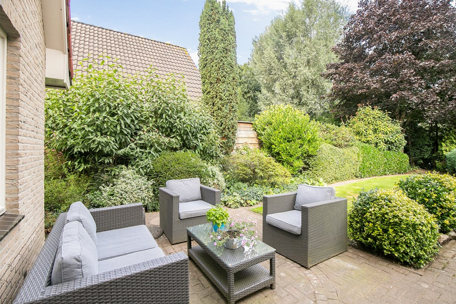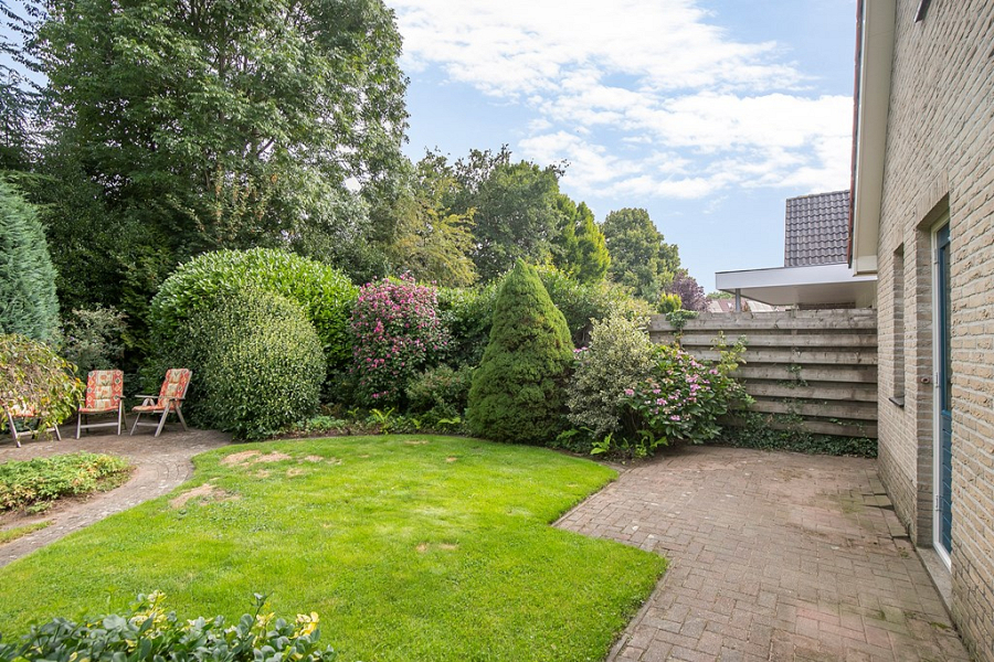 De heerlijke vrij gelegen tuin is speels aangelegd met diverse terrassen. De tuin is gelegen op het noorden, maar omdat deze diep is, heb je achterin de tuin vrijwel altijd de zon. Tevens is er langs de garage een achterom ingang aanwezig.