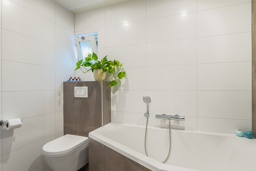 Zoek je een plek om te ontspannen? Dit kan in de moderne badkamer, welke is voorzien van een ligbad, inloopdouche, 2e toilet en wastafel met meubel.