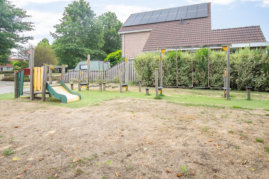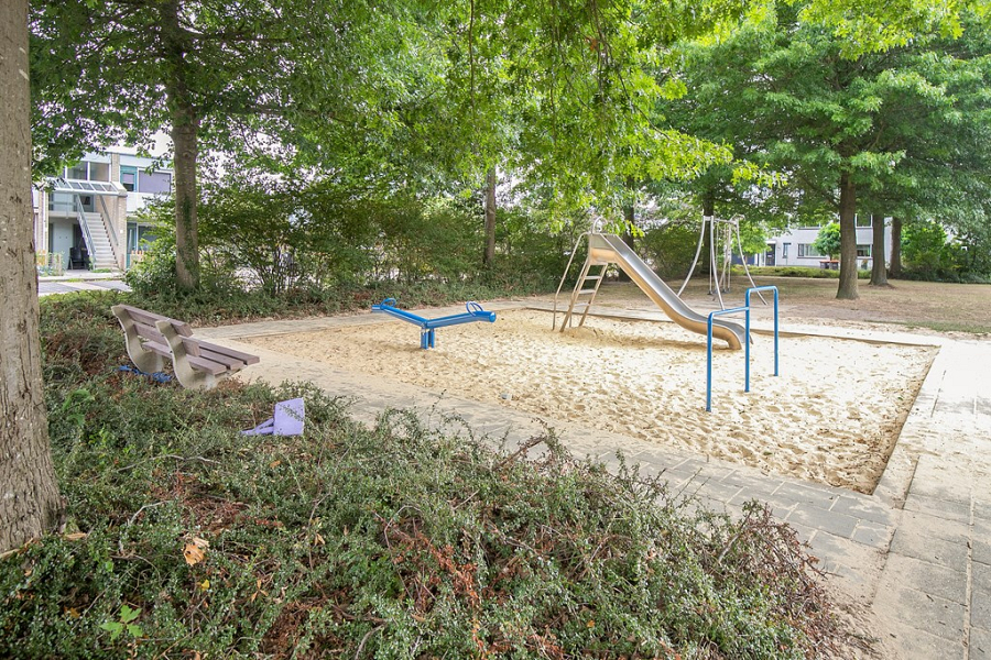 De woning is gelegen in een relatief jonge wijk, met veel groen, rust en ruimte. Voor de kinderen zijn er speeltuintjes, voetbalveldjes maar ook spelen op straat kan hier nog gewoon.