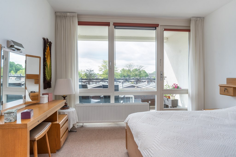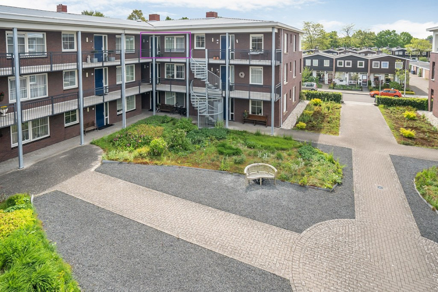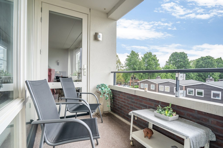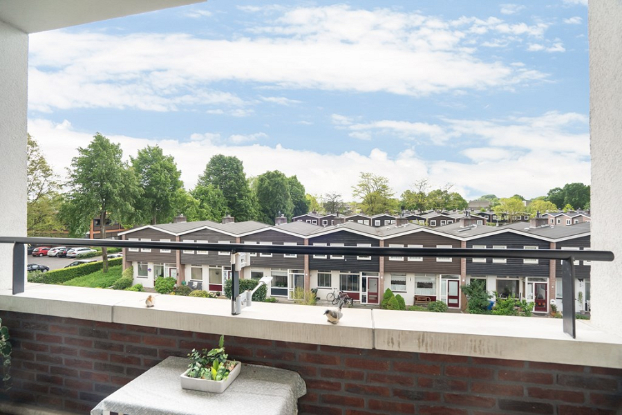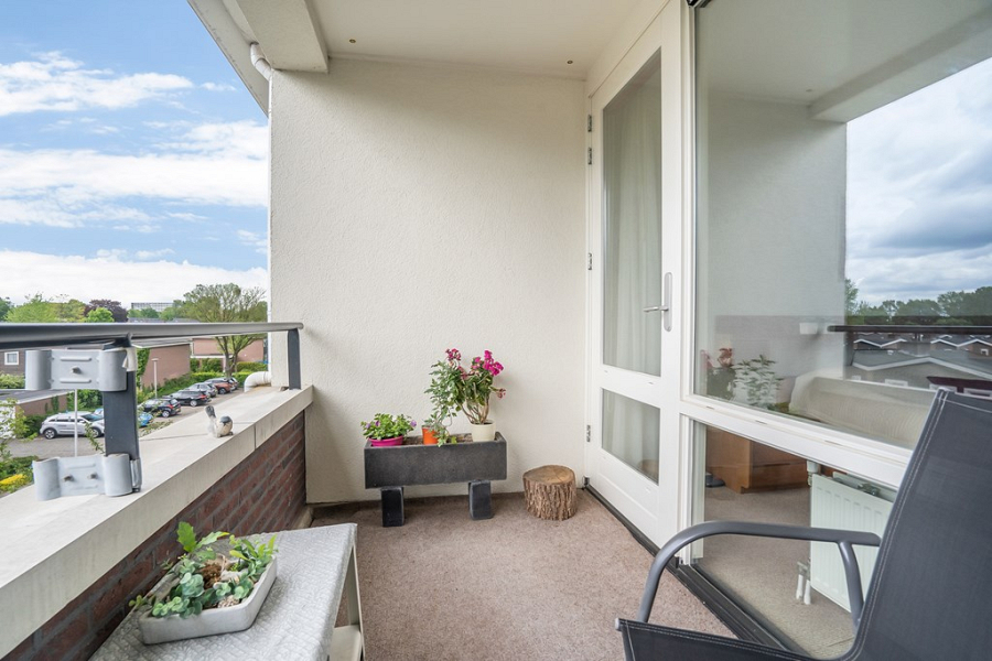 Het balkon, gelegen op het zuiden, is zowel vanuit de woonkamer als de slaapkamer te bereiken. Er is voldoende ruimte om hier te genieten van een hapje en drankje, met uitzicht over de wijk. Maar ook in de fraai aangelegde binnentuin staan bankjes, waar men heerlijk kan genieten van de rust en ruimte, of wellicht een gezellig praatje met de buren kan maken!