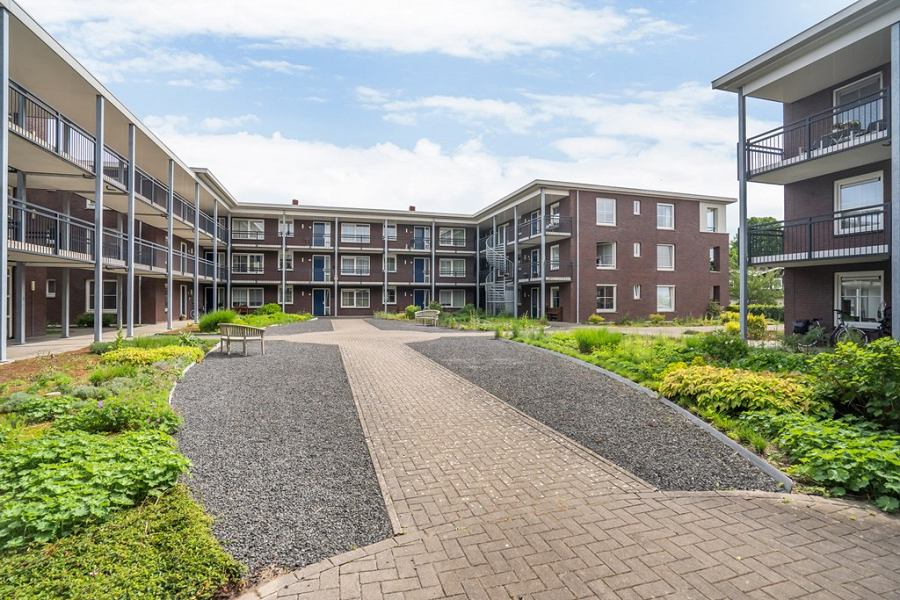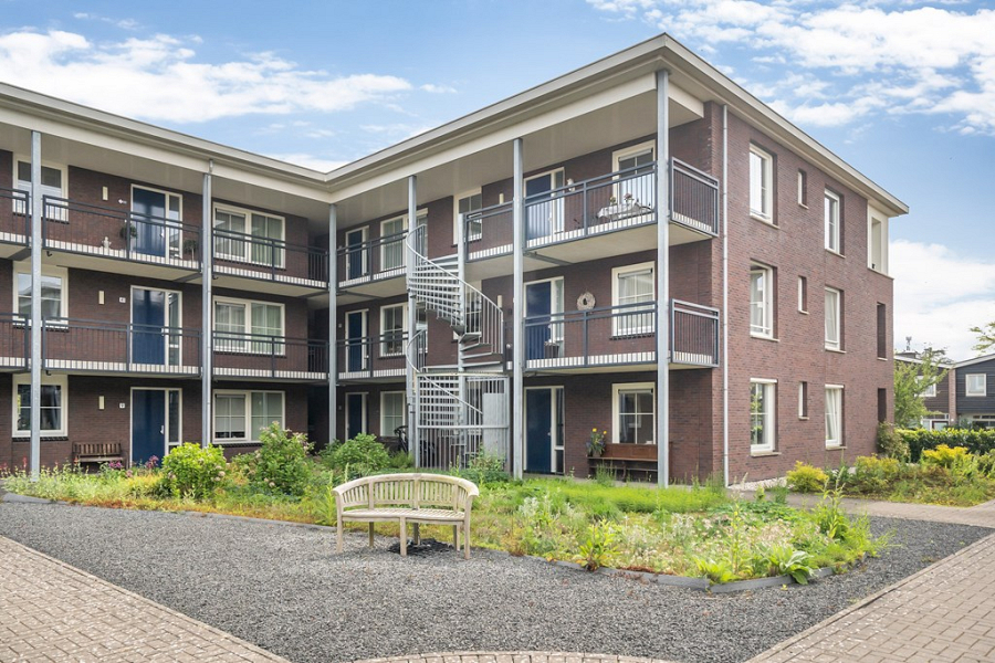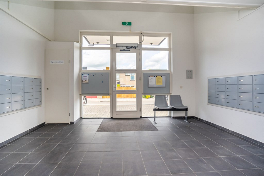 Via de galerij kom je binnen in het appartement Dit appartement is overigens gelegen aan het einde van de galerij, wat zorgt voor veel privacy.