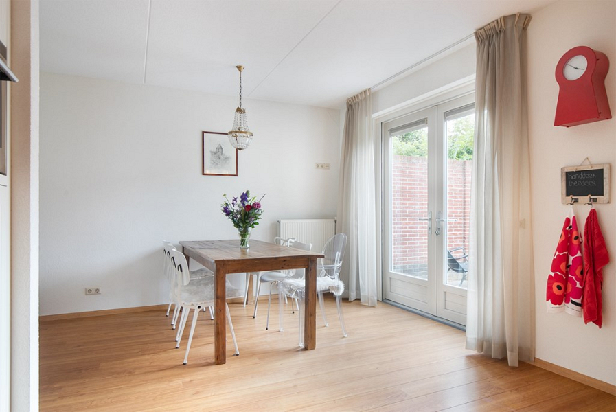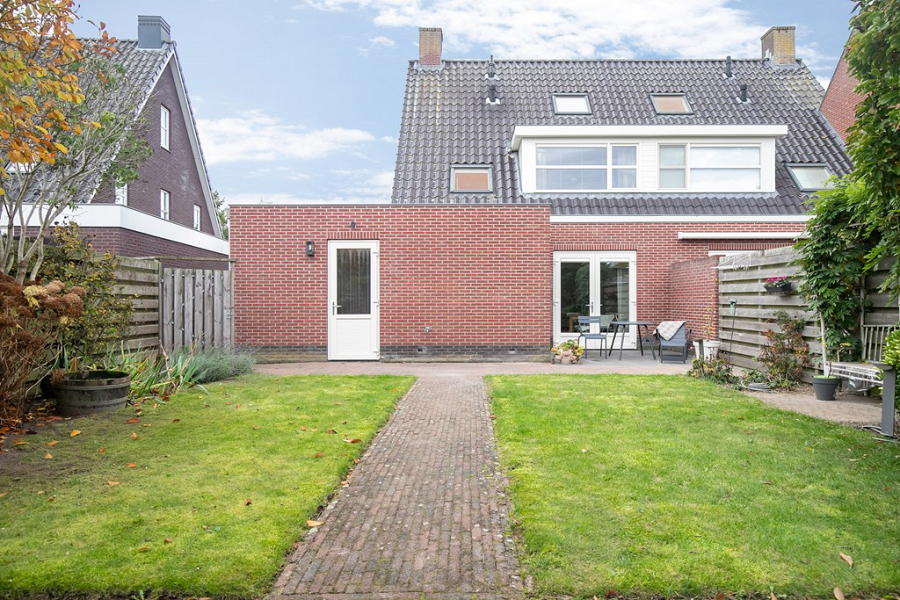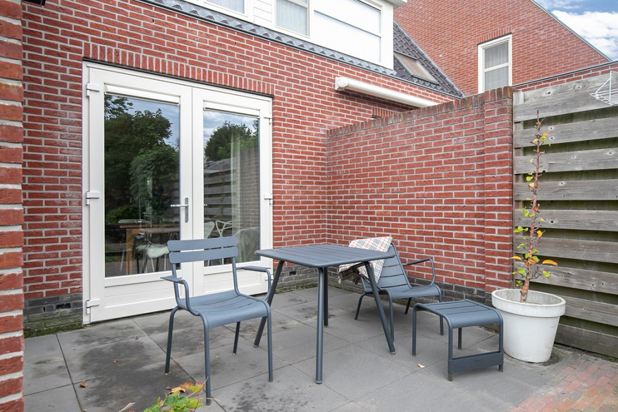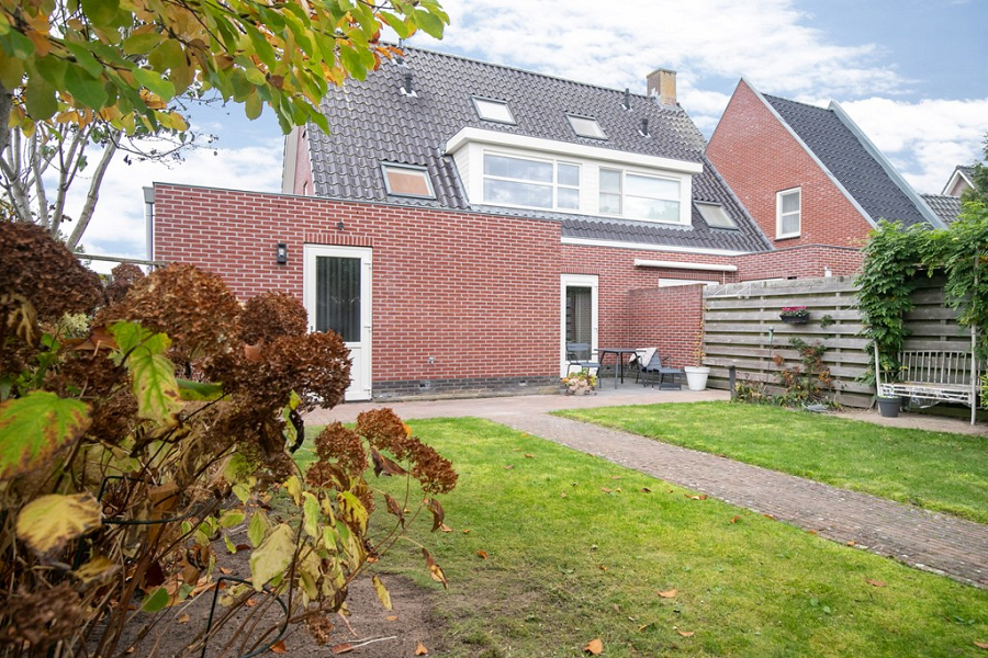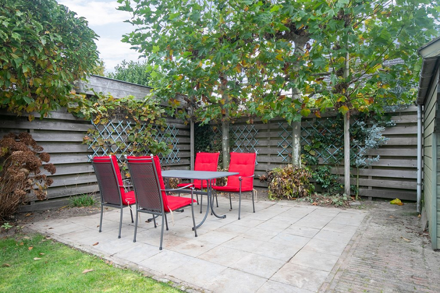 De fraaie, brede en diepe achtertuin is gelegen op het oosten. Je kunt hier 's morgens genieten van de vroege zonnestralen terwijl je geniet van je eerste kop koffie van de dag of een lekker ontbijtje, máár doordat de tuin vrij diep is heb je achterin de tuin op mooie zomerdagen ook nog de zon.