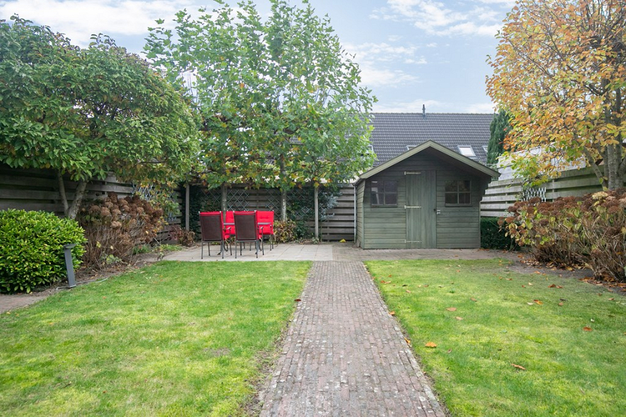 De achtertuin is tevens bereikbaar via de zijkant van de woning en is nog voorzien van een praktische houten berging.