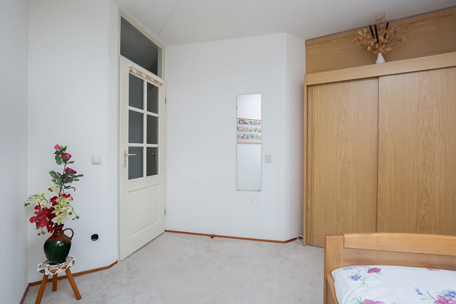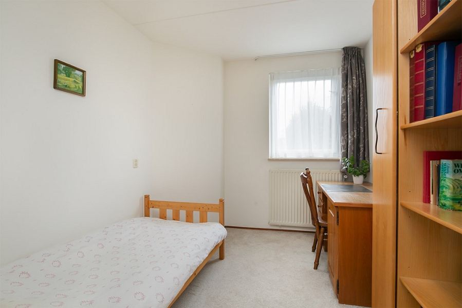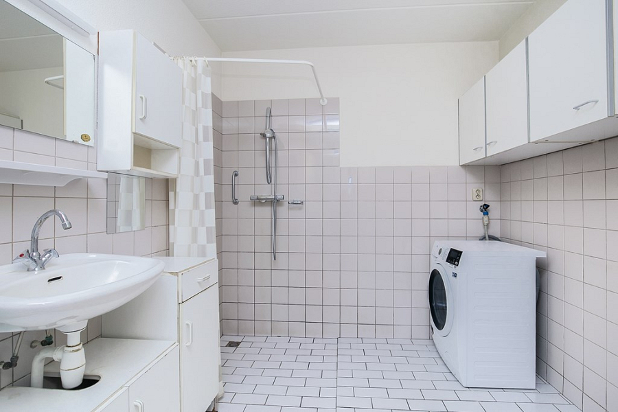 De badkamer is zeer ruim te noemen met voldoende bewegingsruimte en voorzien van een douchehoek en wastafel. Tevens zijn hier de witgoedaansluitingen aanwezig. Aan de rechterzijde bevindt zich de eerste slaapkamer en de meterkast. De grootste slaapkamer met een diepe inbouwkast is aan het einde van de hal gelegen evenals de woonkamer.