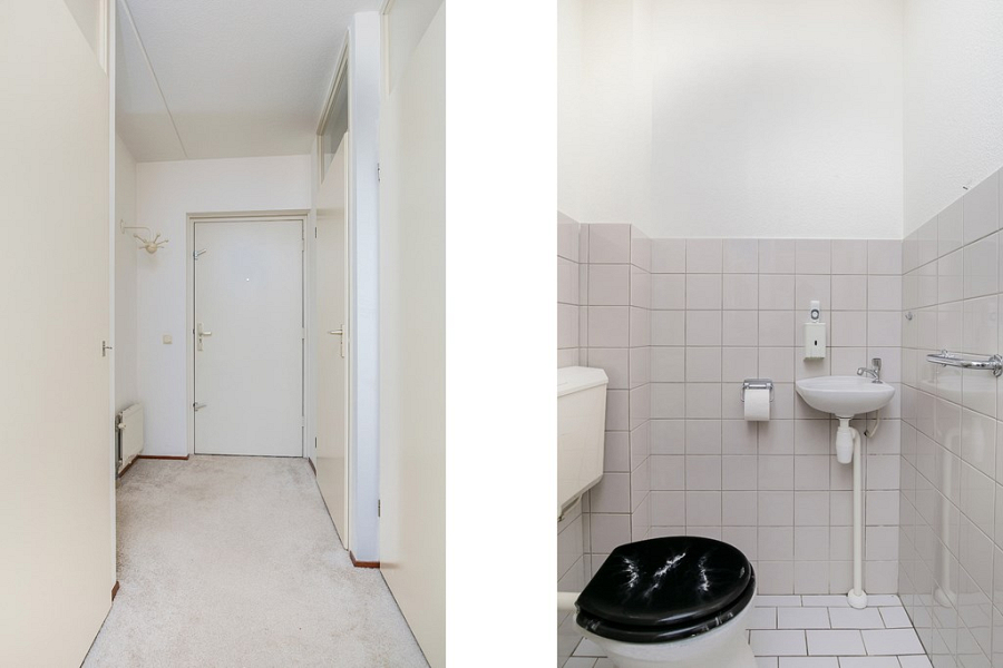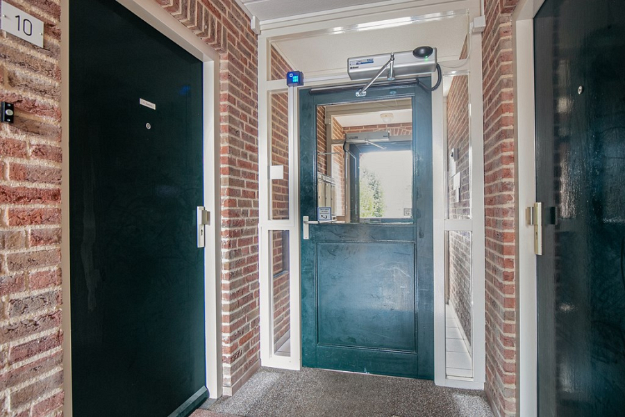 Via de gezamenlijke entree bereik je gelijk aan de rechterkant het appartement. De ruime hal biedt toegang aan alle vertrekken.