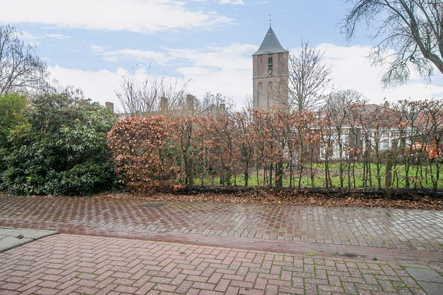 Via de achterdeur in de keuken bereik je het Kerkenpad. Hier is ook de eigen parkeerplaats gesitueerd en de eigen berging.