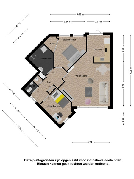 -Er zijn sfeerbeelden aan de presentatie toegevoegd om een beeld te geven van een andere indeling betreffende de keuken en slaapkamer.