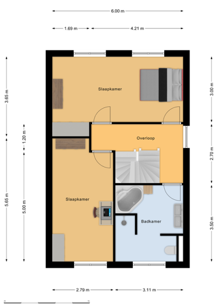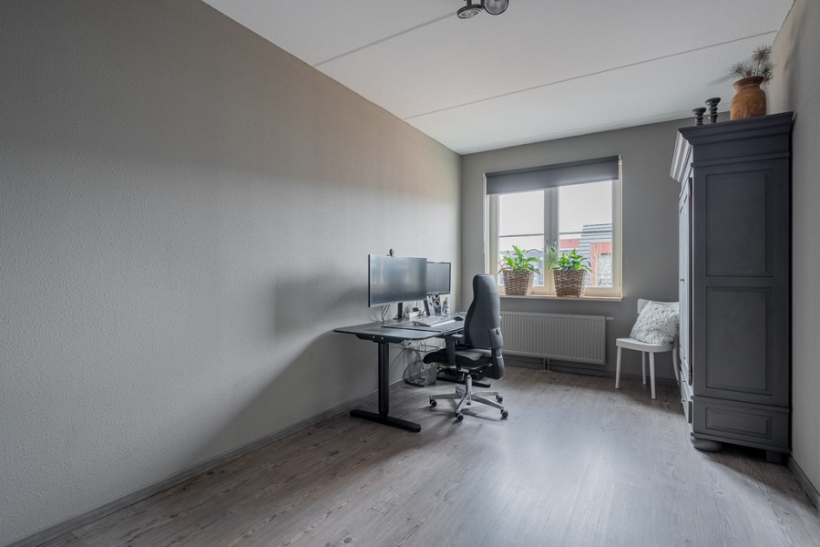 De slaapkamer aan de voorzijde is dan goed te gebruiken als ouderslaapkamer. Ruimte genoeg!