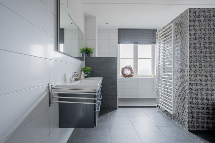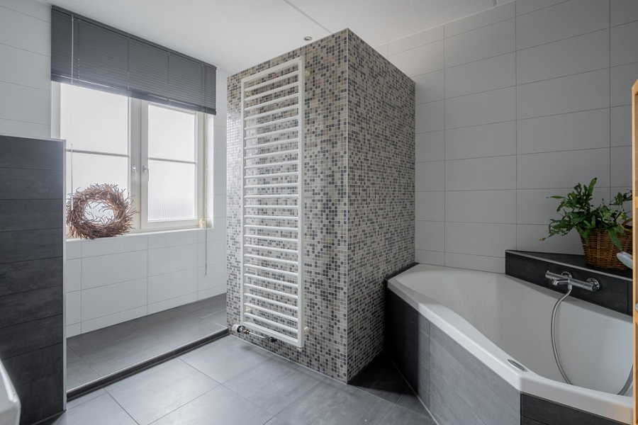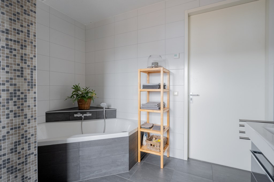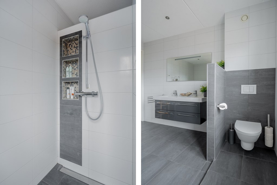 De parel van de verdieping is met recht de zeer ruime en elegante badkamer. Deze is voorzien van een inloopdouche, ligbad, dubbele wastafel met meubel en een 2e toilet.