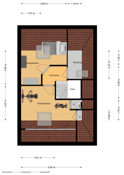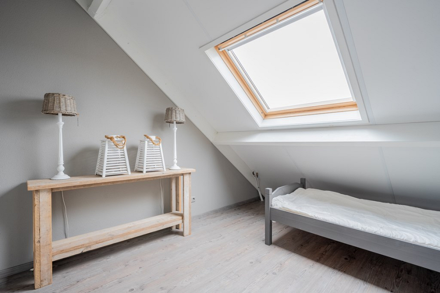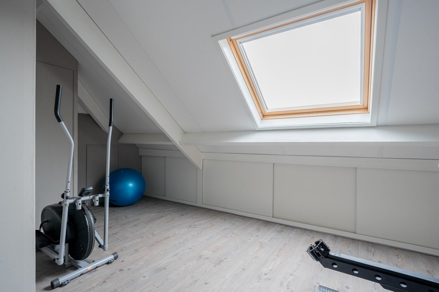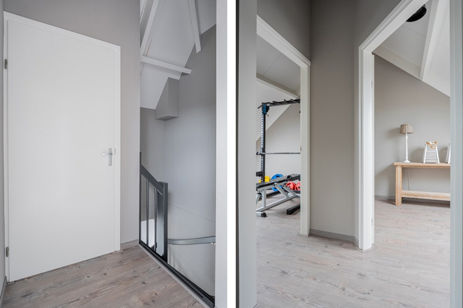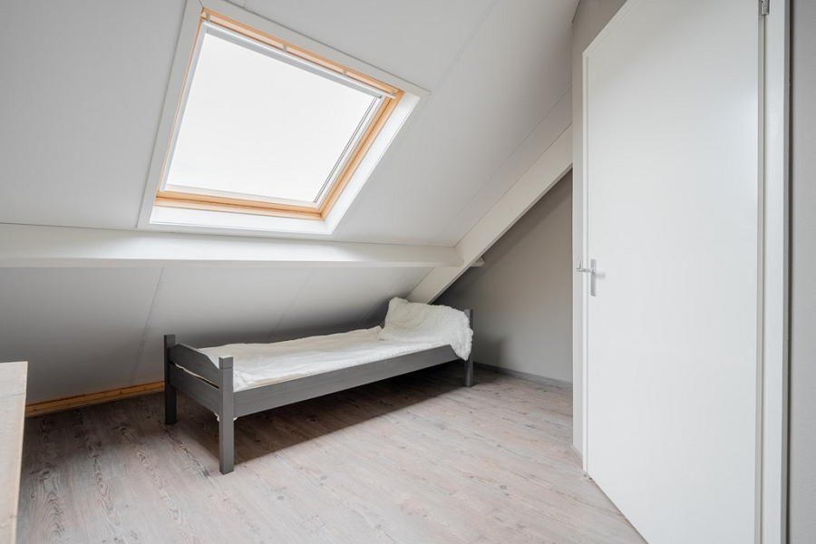 Middels een vaste trap bereiken wij de tweede verdieping. Deze is in 2018 volledig verbouwd en optimaal ingedeeld in twee ruime slaapkamers met een Velux dakraam en een separate wasruimte met de aansluitingen voor het witgoedapparatuur.