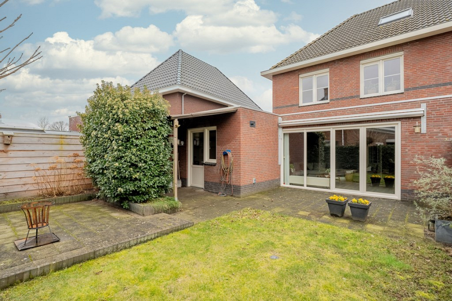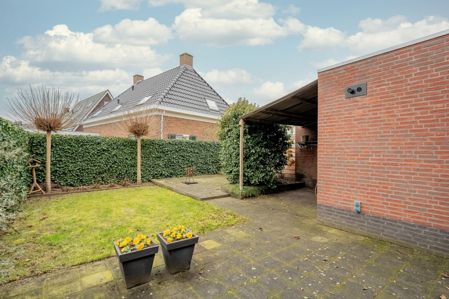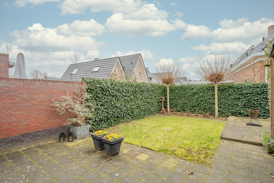De achtertuin is gelegen op het oosten en onderhoudsvrij aangelegd. Je kunt hier 's morgens genieten van de vroege zonnestralen met je eerste kop koffie van de dag of een lekker ontbijtje, máár door de diepte heb je achterin de tuin op mooie zomerdagen overdag ook nog de zon.