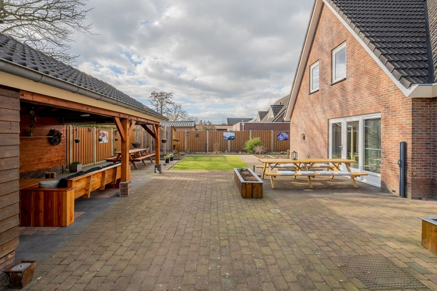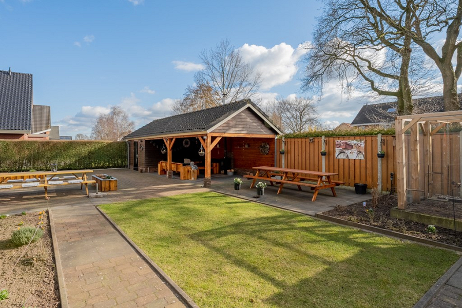 Ook zijn er 2 houten bergingen aanwezig, de fietsenberging (11m2) is aangrenzend aan de woning gebouwd. De andere berging (12m2), is aangrenzend aan de overkapping, welke handig is voor het opbergen van (tuin) gereedschap.