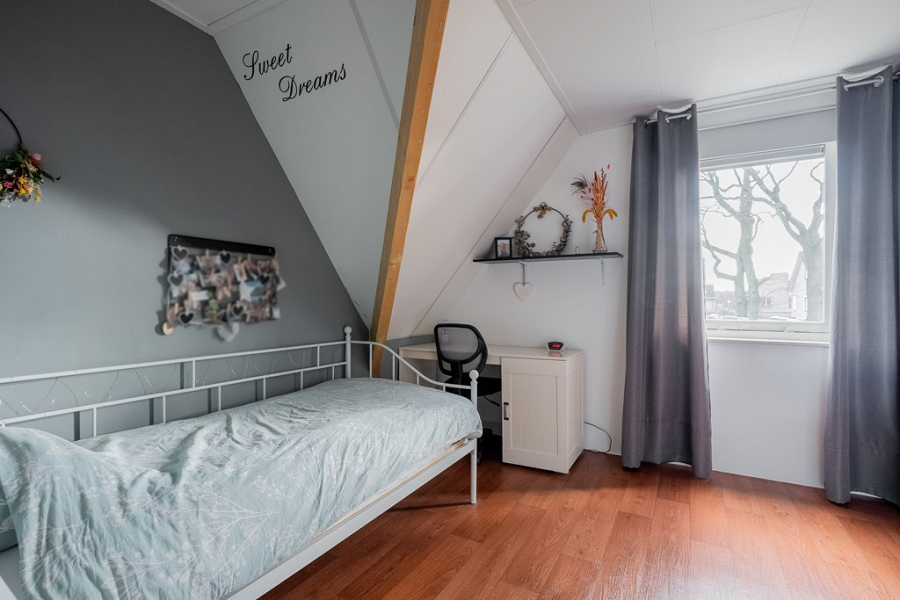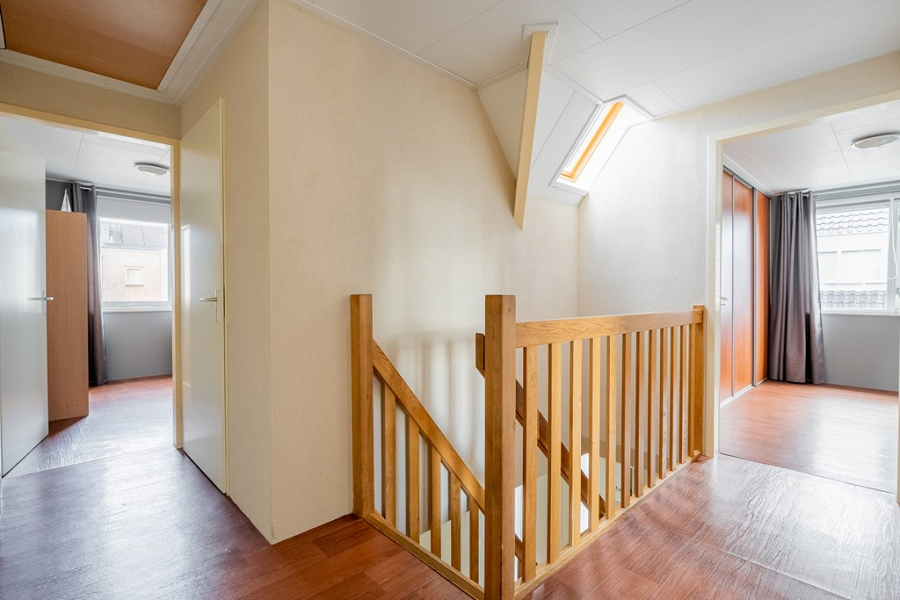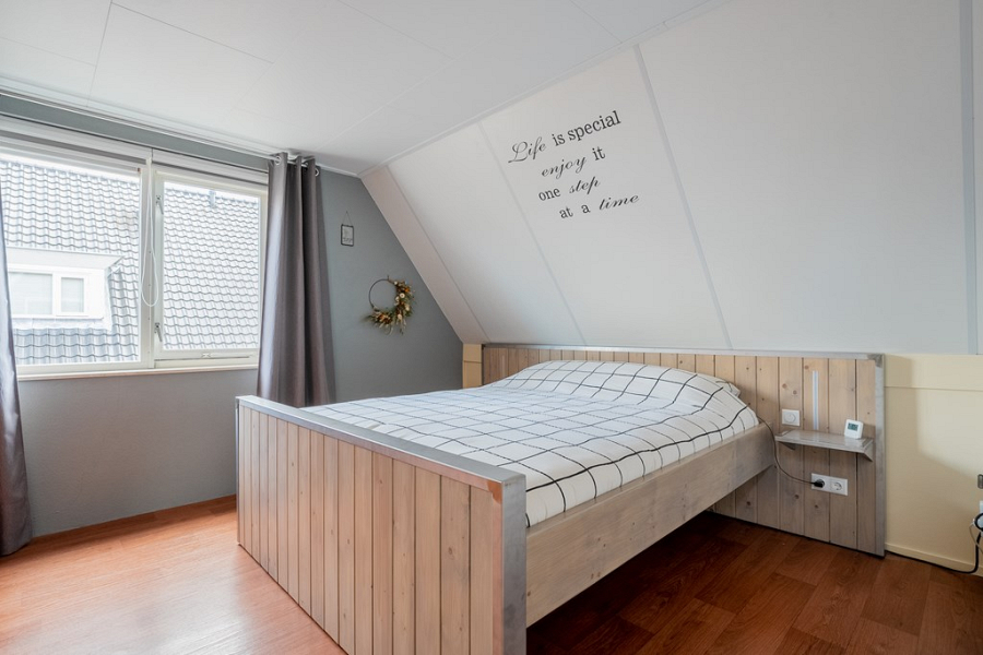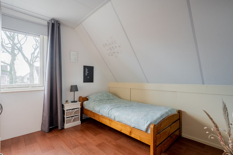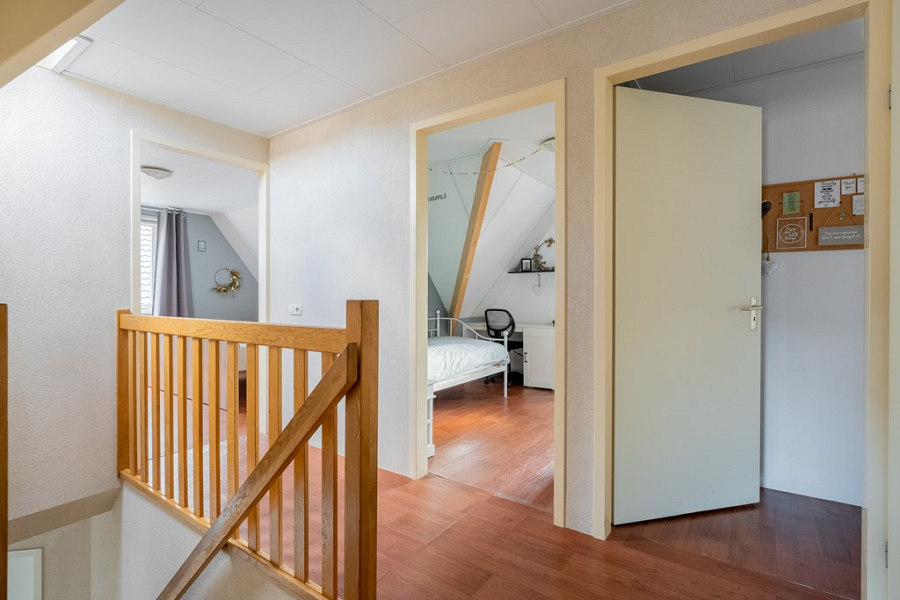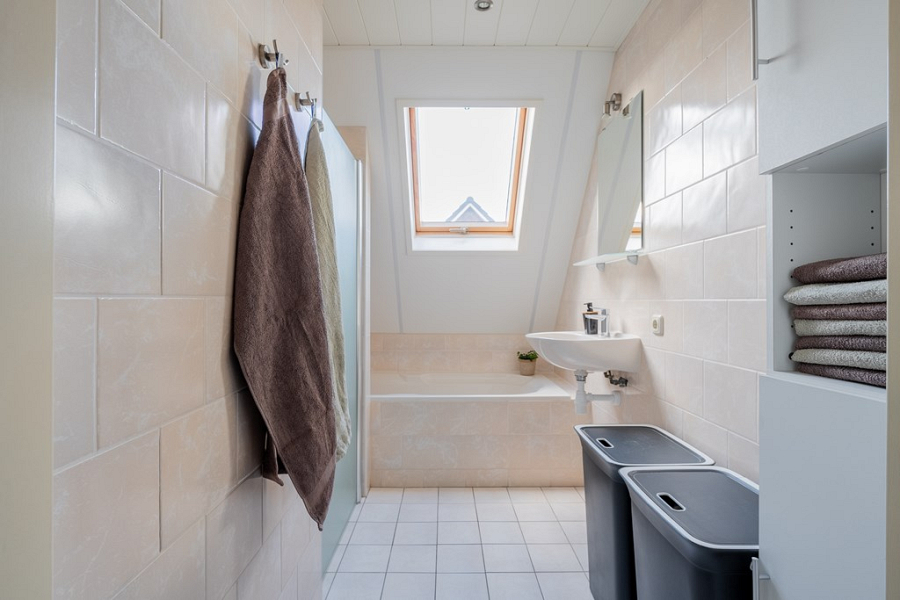 De eigentijdse badkamer is voorzien van een doucheruimte, wastafel met meubel en een ligbad. En met een groot gezin is een apart toilet wel zo fijn! De technische ruimte is ook op deze verdieping aanwezig. En via de vlizotrap op de overloop bereik je de bergzolder, ideaal voor het opbergen van spullen die je niet dagelijks gebruikt.