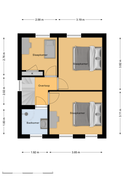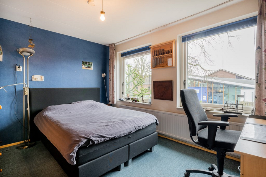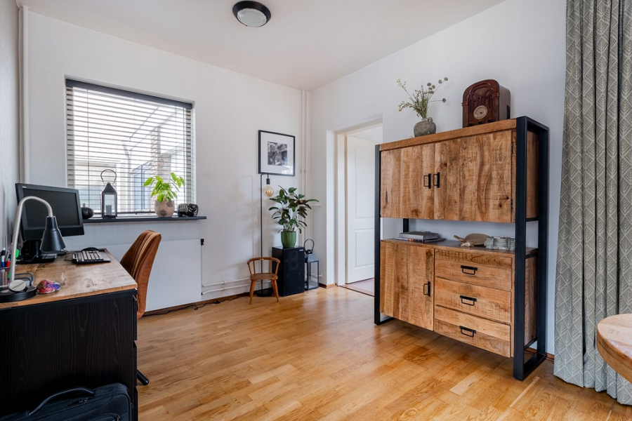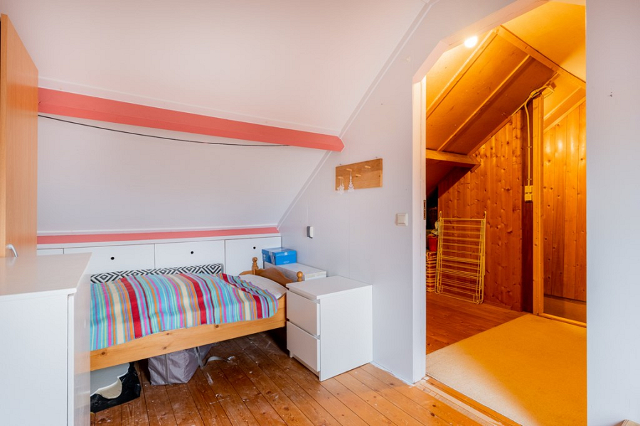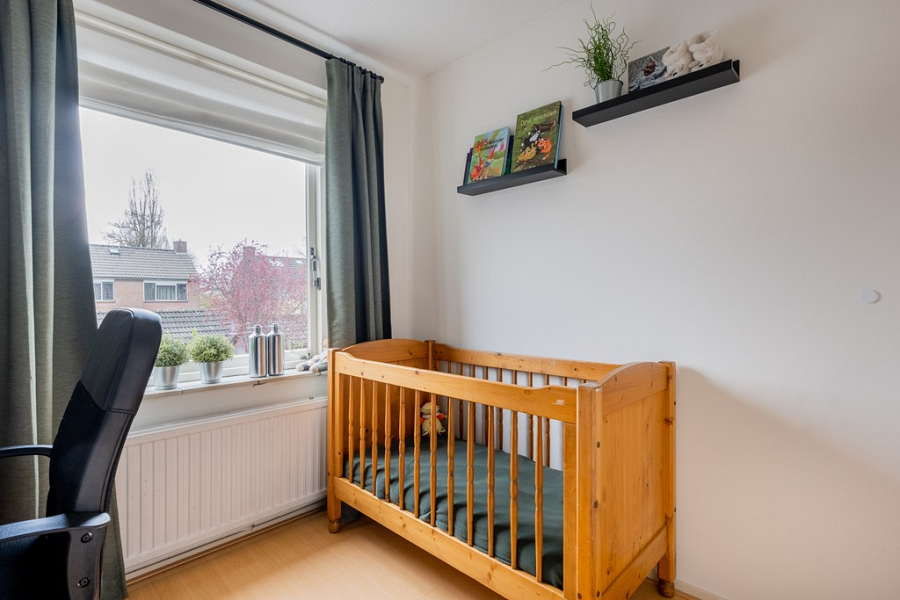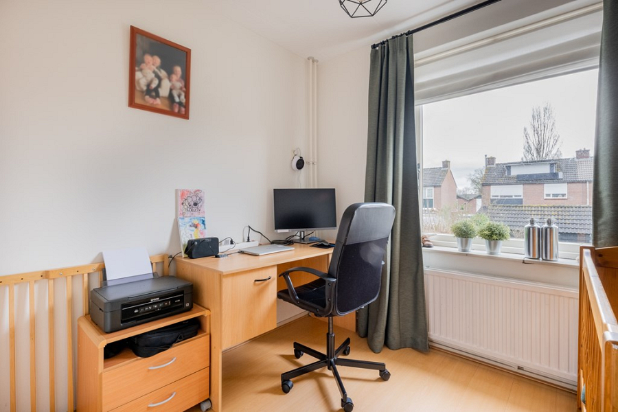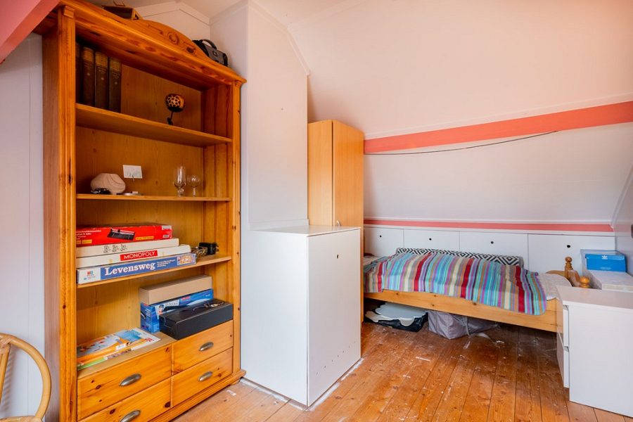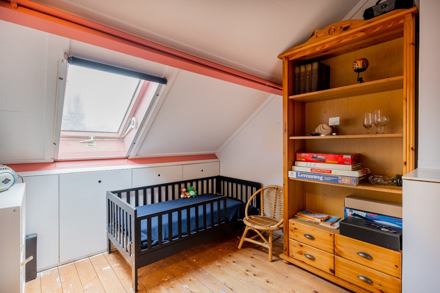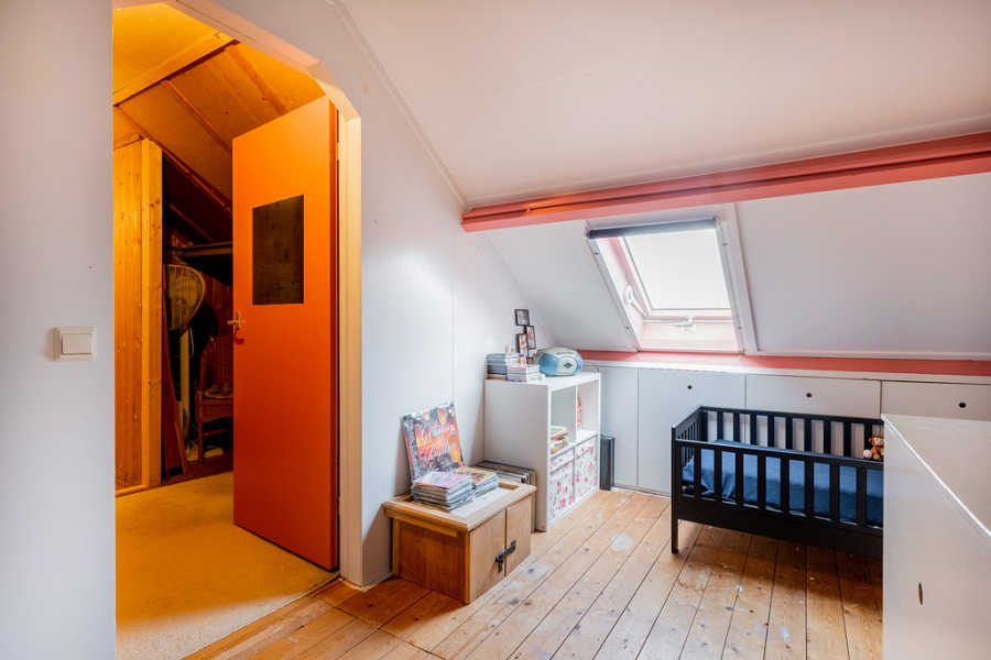 Via de vaste trap bereik je de 2e verdieping met een overloop en 4e slaapkamer. Deze ruimte leent zich overigens ook uitstekend voor het plaatsen van een dakkapel. Achter de knieschotten is er veel ruimte voor het opbergen van spullen welke je niet elke dag gebruikt.