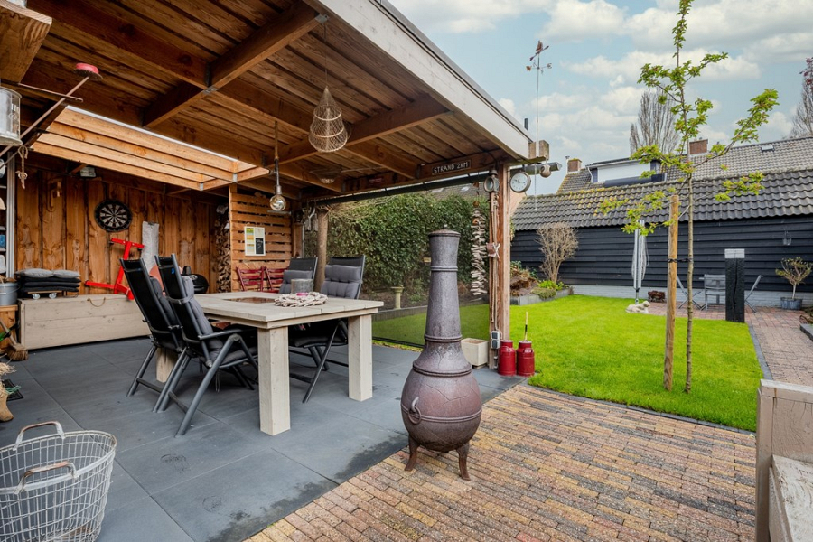 - Verzorgd aangelegde achtertuin met een riante overkapping.