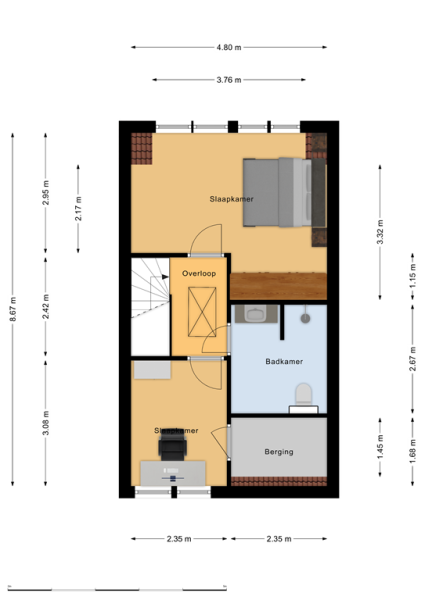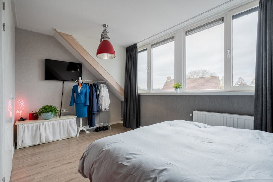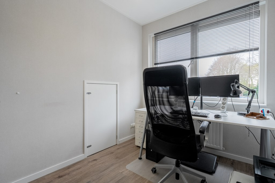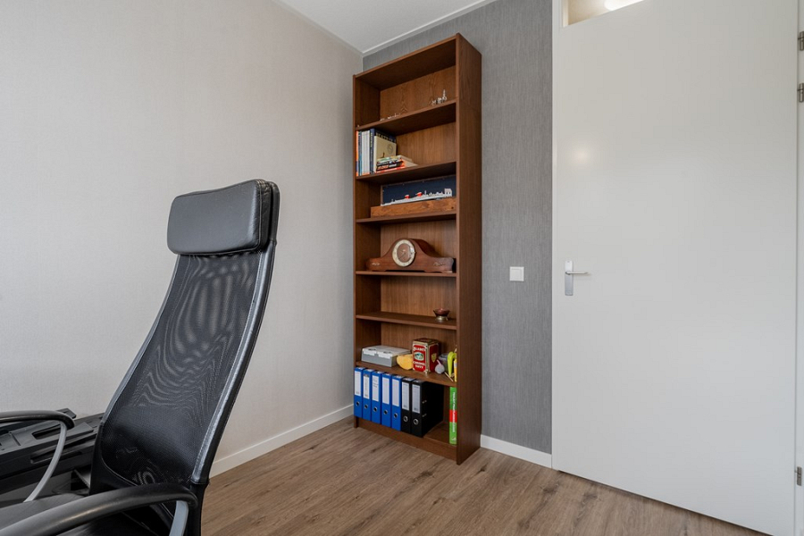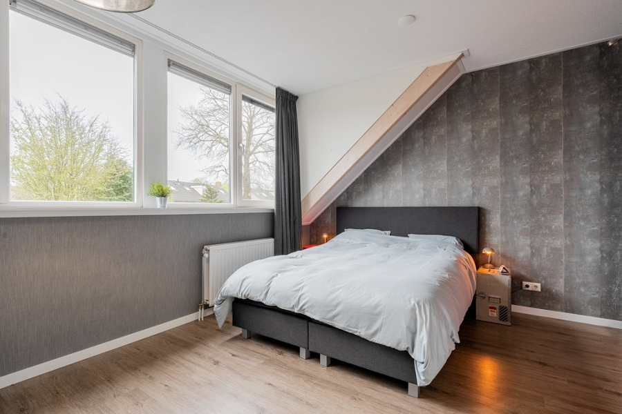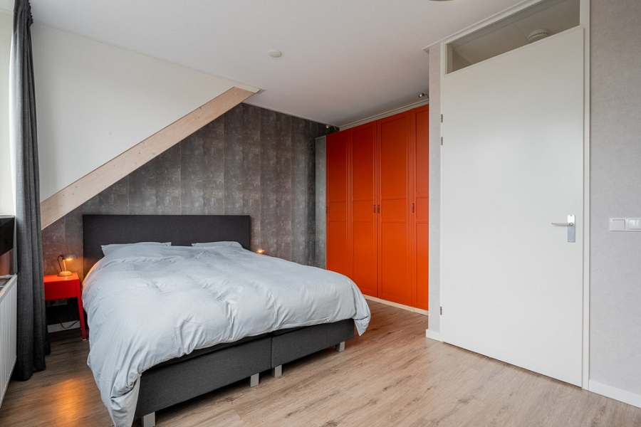 De slaapkamer aan de achterzijde is zeer ruim te noemen door de dakkapel en tevens voorzien van elektrische screens. De slaapkamer aan de voorzijde leent zich uitstekend voor een kinder/ werkkamer en heeft nog een inpandige berging, welke ook bij de slaapkamer te betrekken is. (Of een leuk verstopplekje voor de (klein)kinderen). De moderne badkamer is voorzien van een inloopdouche, 2e toilet en wastafel met meubel en verwarmde spiegel.