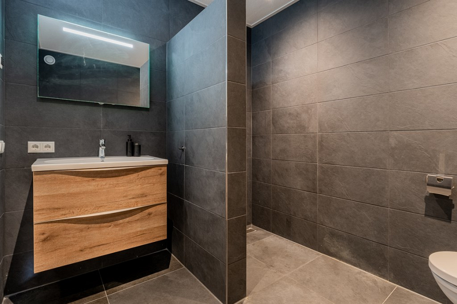 Terug naar de hal bereiken wij via de trap de verdieping. Hier bevinden zich de 2 slaapkamers en de ruime en elegante badkamer.