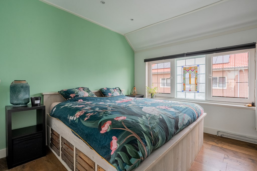 Deze woning, gelegen in een karakteristieke straat, ligt op loop-en fiets afstand van de binnenstad van Zwolle, alsmede het centraal station. Diverse scholen, winkels en andere voorzieningen zijn ook te vinden in deze gezellige buurt. De woning is gebouwd in 1935, is gemoderniseerd máár met behoud van de vele karakteristieke elementen. Zo komen we binnen in de hal met granitovloer en zijn verschillende ramen voorzien van glas-in-lood. Daarnaast is er een sfeervolle houtkachel in de woonkamer en niet te vergeten de prachtige paneeldeuren.
