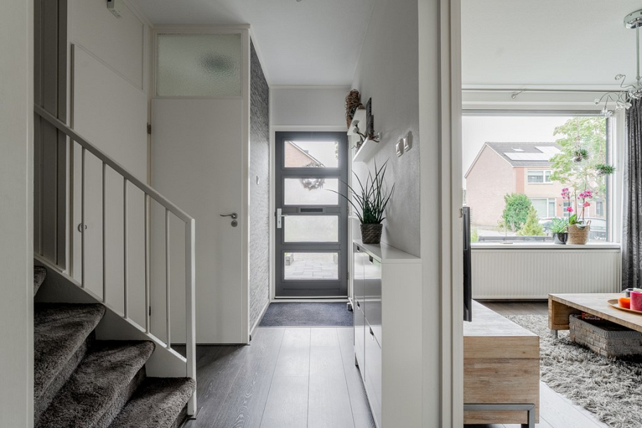 Bij binnenkomst in de hal valt direct de prettige sfeer en rustige uitstraling op, hier voel je je direct thuis. De hal biedt toegang aan de woonkamer en de keuken, maar ook het toilet, meterkast en trapopgang bevinden zich in deze ruimte.