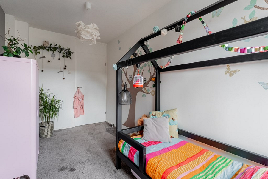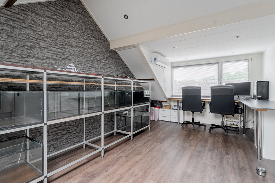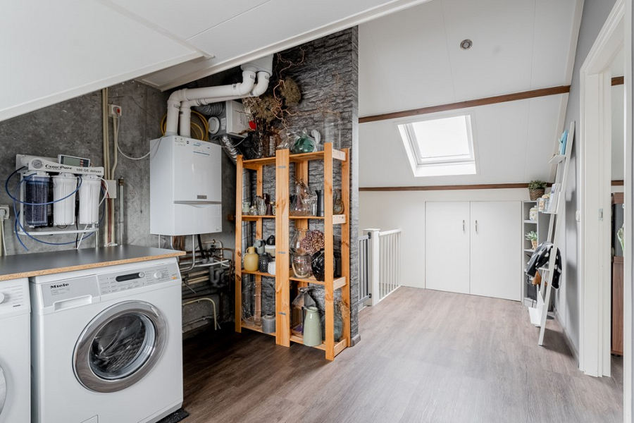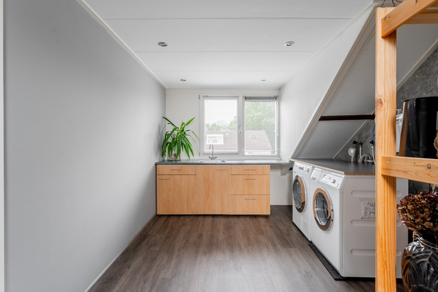 De tweede verdieping van deze woning is enkele jaren geleden volledig gerenoveerd en uitgevoerd met een dakkapel van 6 meter en 2 dakramen, waardoor er veel extra ruimte én licht is gecreëerd. Op dit moment bevindt zich hier de overloop en vierde slaapkamer. Echter is een vijfde slaapkamer hier ook eenvoudig te realiseren. Op de overloop is een heuse wasruimte met eigen keukenblok aanwezig, wat een groot pluspunt is voor jonge gezinnen. Geen gedoe meer met het sjouwen naar een externe ruimte, hier heb je alles bij de hand. Daarnaast is er op deze verdieping zelfs airconditioning geïnstalleerd, zodat je tijdens warme zomerdagen altijd van een koele slaapkamer kunt genieten, uiteraard kan deze ook verwarmen in de winter! En aan bergruimte is ook gedacht, hiervan is voldoende achter de knieschotten.
