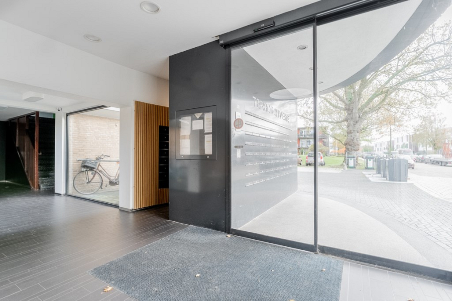 Het complex is voorzien van een centrale afgesloten entree met intercom en video. Op de begane grond is naast een eigen afgesloten berging, tevens een gezamenlijke fietsenberging aanwezig. Via de trap of de lift ga je naar de 1e verdieping. Het complex is de afgelopen jaren fraai opgeknapt en ziet er zeer verzorgd uit. De openbare ruimtes worden wekelijks schoongemaakt.
