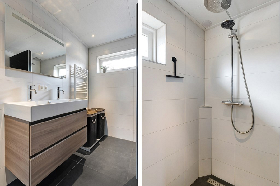 We gaan door naar boven! Op de eerste verdieping zijn 3 comfortabele slaapkamers aanwezig en de moderne, vernieuwde badkamer. De badkamer is in 2020 geplaatst en voorzien van een inloopdouche, dubbele wastafel met meubel, verwarmde spiegel en een toilet.