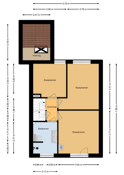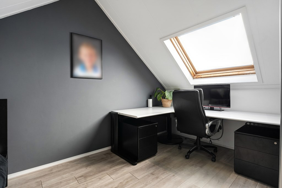 Ook de tweede verdieping is middels een vaste trap te bereiken. Op de voorzolder is de CV opstelling gesitueerd en hier zijn de aansluitingen voor het witgoedapparatuur. Vanuit de voorzolder kom je uit in de 4e slaapkamer met een ruim dakraam. Achter de knieschotten is er veel ruimte voor het opbergen van spullen.
