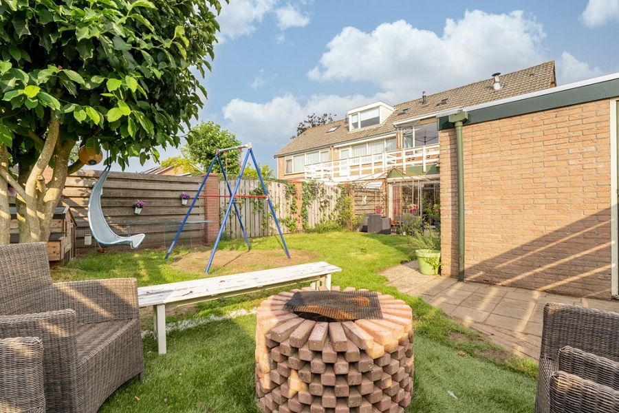 Vanuit de garage is er een deur naar de zonovergoten achtertuin. De tuin geeft veel privacy en is gelegen op het zuidoosten. De perfecte setting voor gezellige avonden met vrienden en familie. Heerlijke vakantiesferen in je eigen tuin, wie wil dit nou niet? Tevens is er een praktische achterom ingang aanwezig.