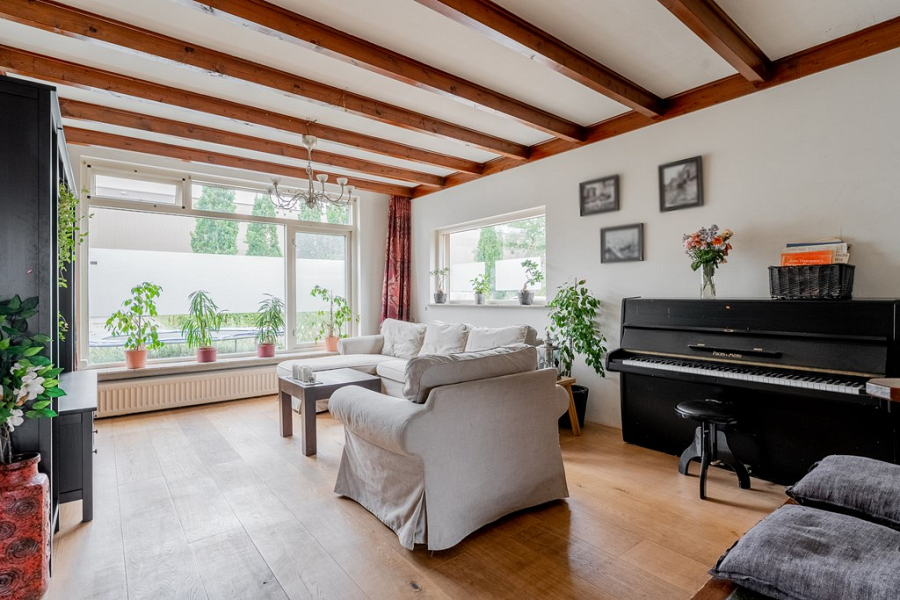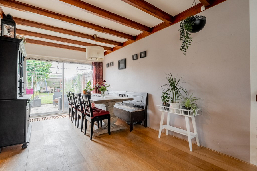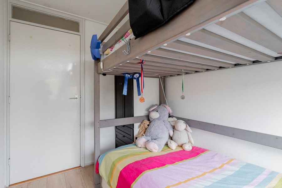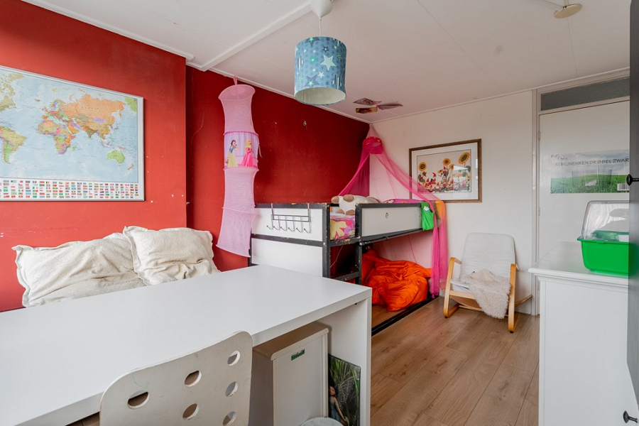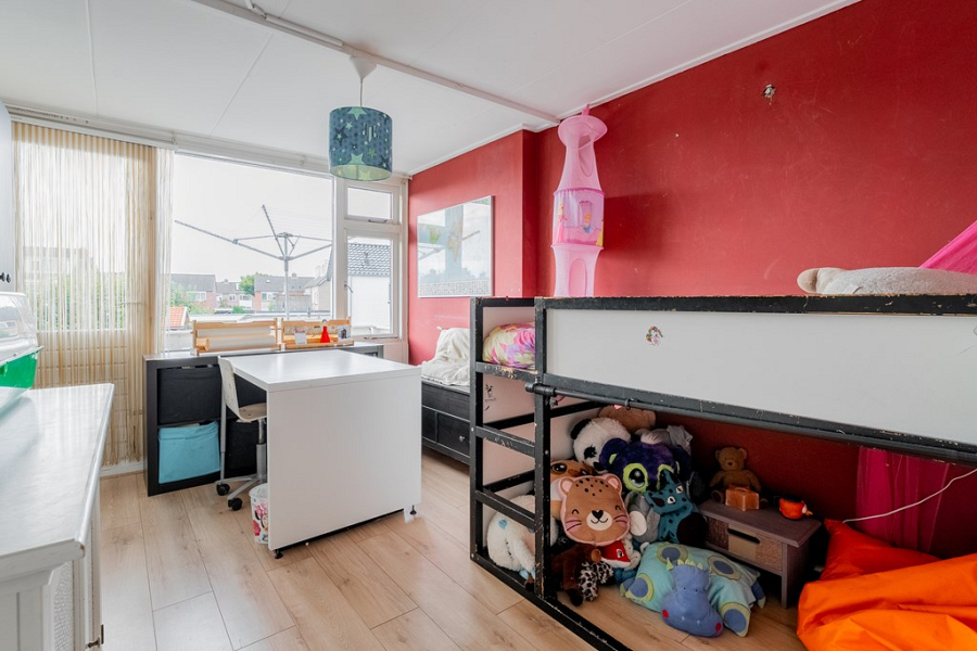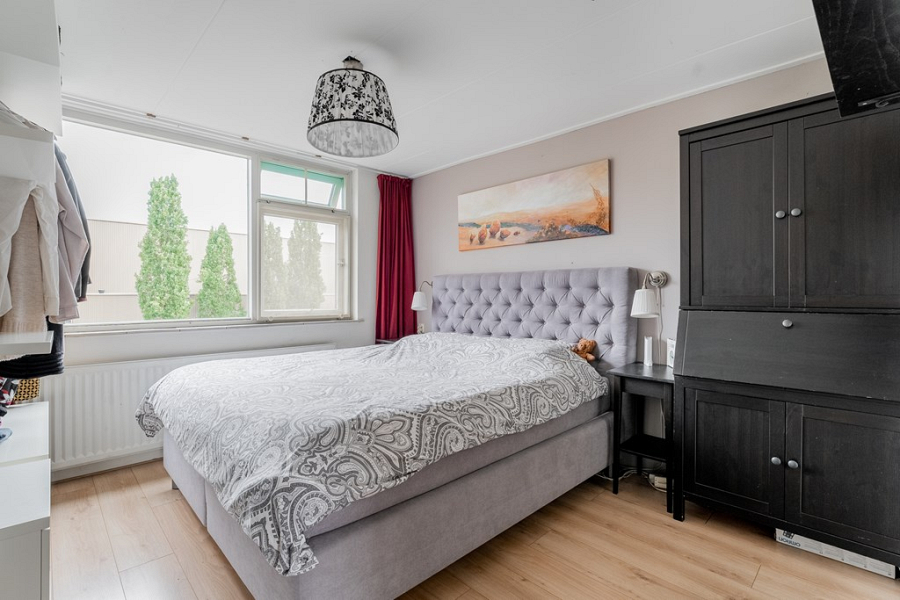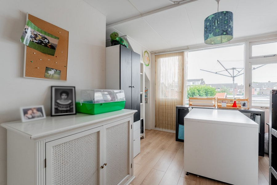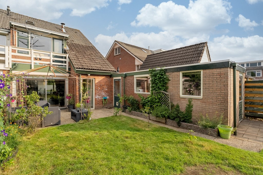 De woning is voorzien van vier slaapkamers en een garage, dus er is ruimte genoeg voor het hele gezin én een kantoor of hobbyruimte aan huis. Ook is de woning aan de achterzijde op de 1e verdieping uitgebouwd, wat ruimere kamers heeft gecreëerd.