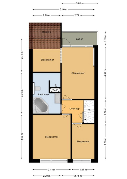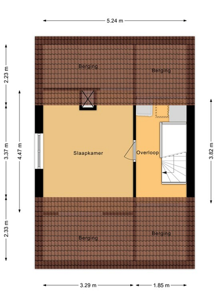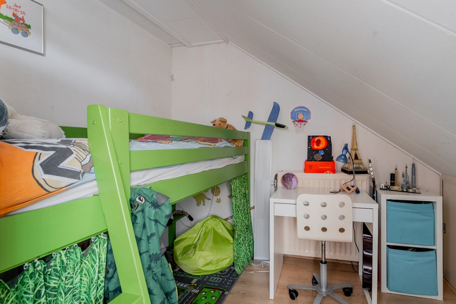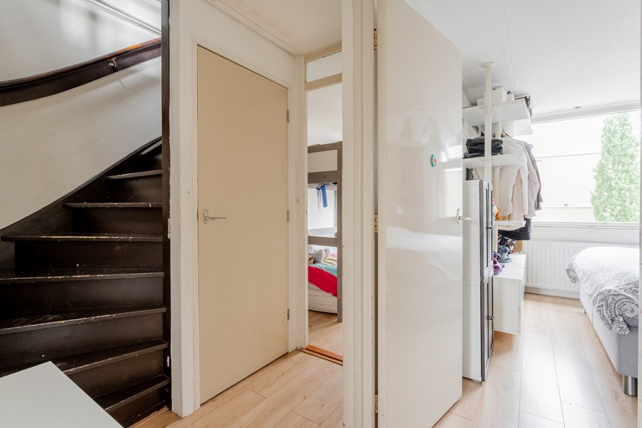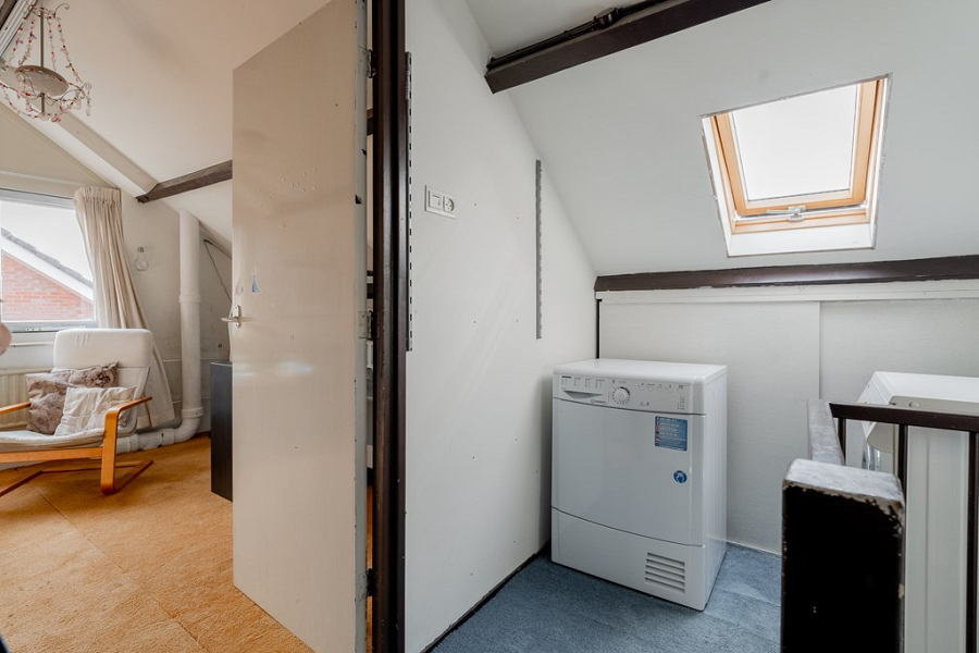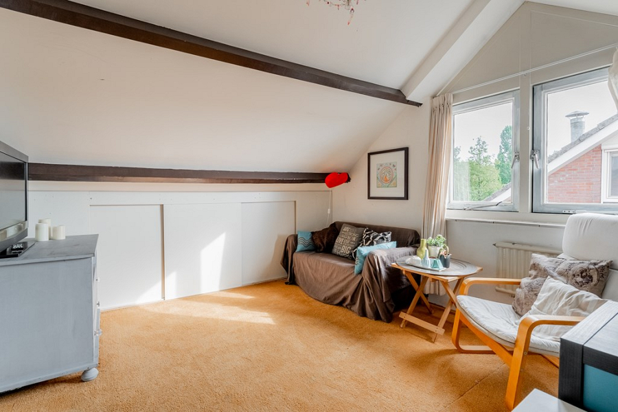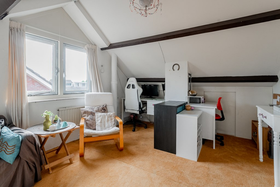Via de vaste trap bereik je de 2e verdieping met een overloop en 4e slaapkamer. Deze ruimte leent zich overigens ook uitstekend voor het plaatsen van een dakkapel. Achter de knieschotten is er veel ruimte voor het opbergen van spullen welke je niet elke dag gebruikt.