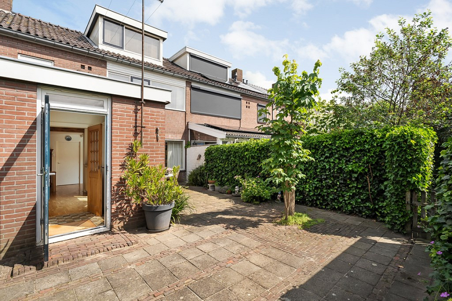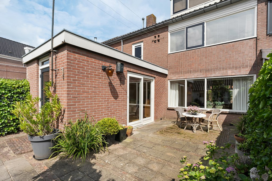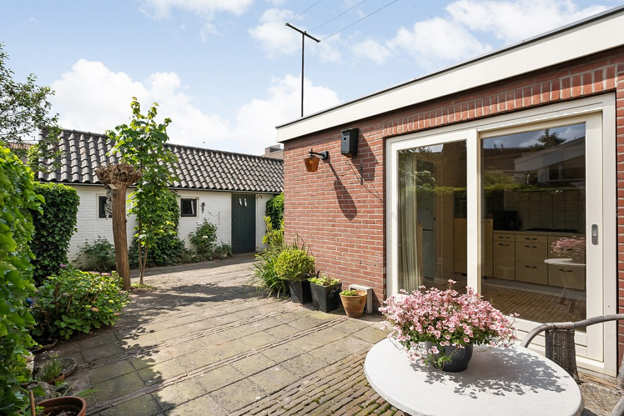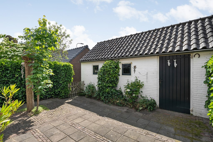 De gezellige achtertuin is gelegen op het zuiden. Een heerlijke plek om te ontspannen met je gezin en/of vrienden. De woning heeft tevens een achterom ingang, welke toegang geeft tot het parkeerterrein. Via de tuin is ook de vrijstaande stenen berging bereikbaar (18m2). Een fijne ruimte voor het stallen van fietsen, opbergen van (tuin) gereedschap of het uitoefenen van je hobby!