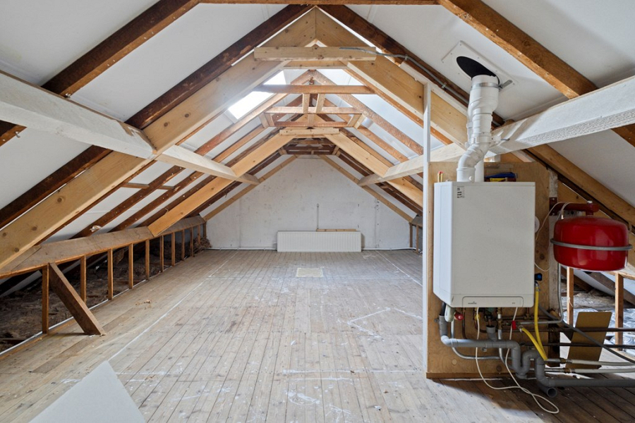 Via een vaste trap bereik je de tweede verdieping: een praktische bergzolder met cv-opstelling en extra bergruimte. Of je nu spullen wilt opbergen of gewoon extra ruimte nodig hebt, deze zolder biedt volop mogelijkheden. (Met aanpassingen is het ook mogelijk om hier een werk-slaapkamer te realiseren.)