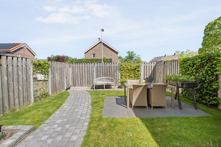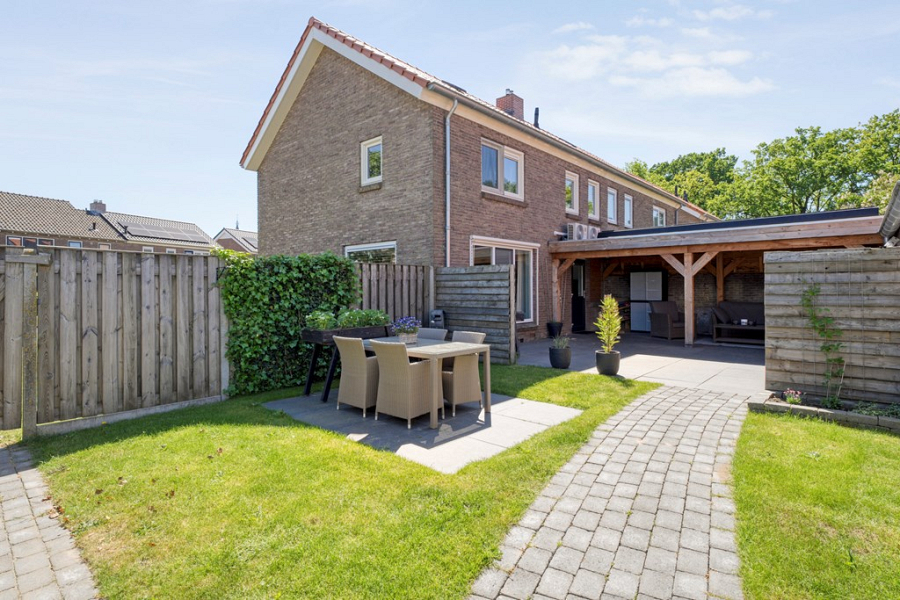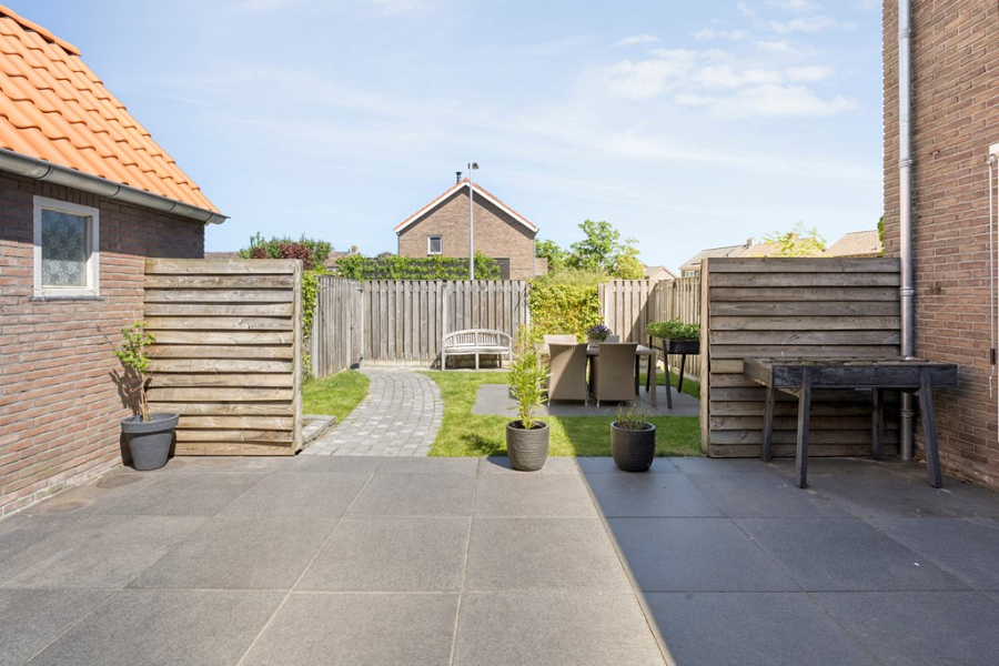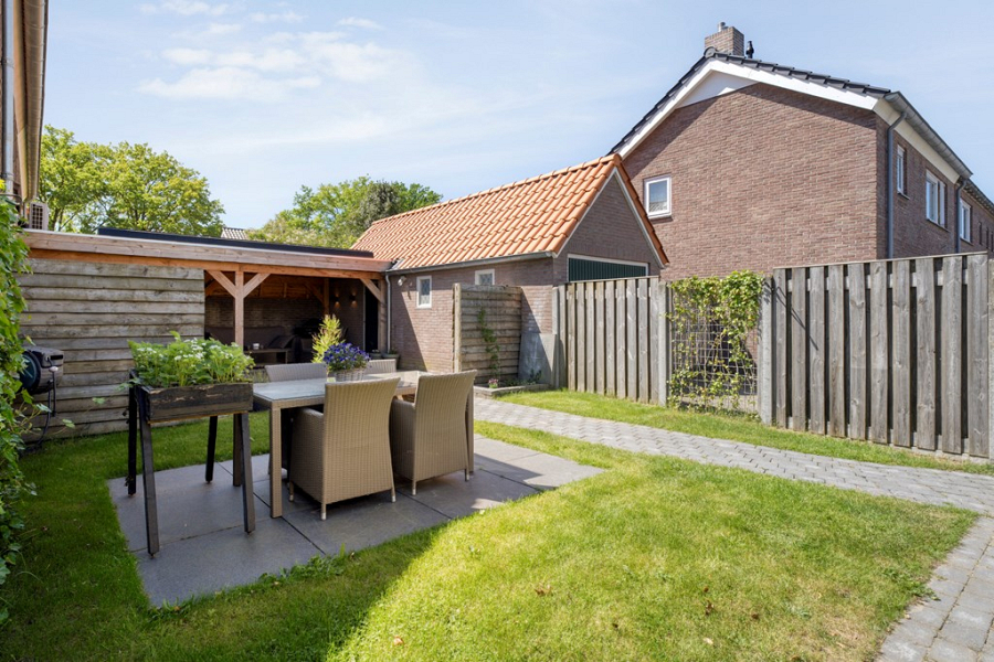 Vanuit de keuken stap je zo de tuin in, die in 2024 compleet opnieuw is aangelegd. De tuin is gelegen op het westen, waardoor je hier de hele middag en avond heerlijk van de zon kunt genieten. Een fijne plek om te ontspannen, mede dankzij de fraaie veranda waar je het hele jaar door beschut kunt genieten van het buitenleven. De vrijstaande stenen garage is ruim en voorzien van een kanteldeur, elektra en vliering. Er is extra tuingrond én oprit gehuurd van de gemeente, voor slechts € 156,- per jaar. Zo kun nog meer genieten van het buitenleven! Zo kun nog meer genieten van het buitenleven! Het raam aan de achterzijde is nog voorzien van een praktische screen, zo houd je tegelijkertijd de zon op warme dagen buiten.
