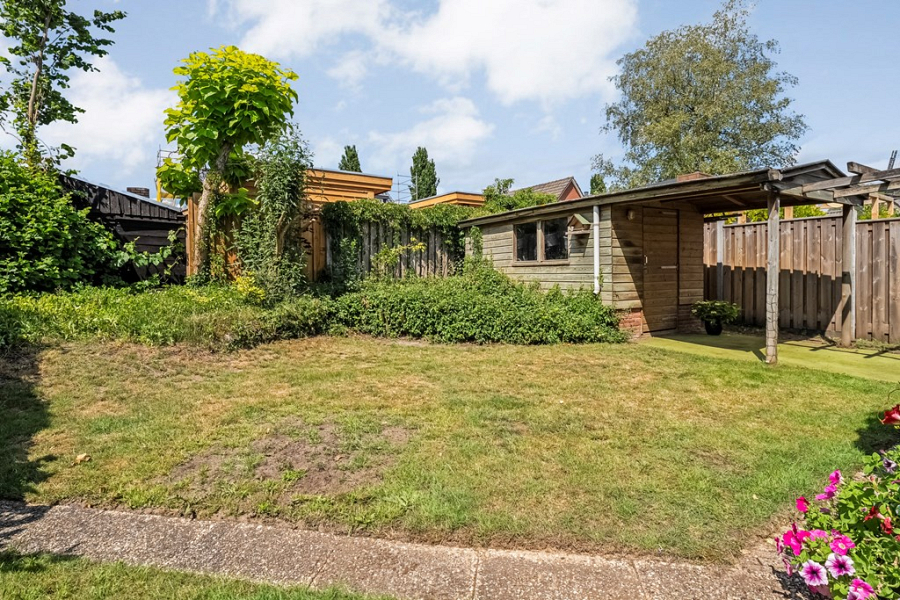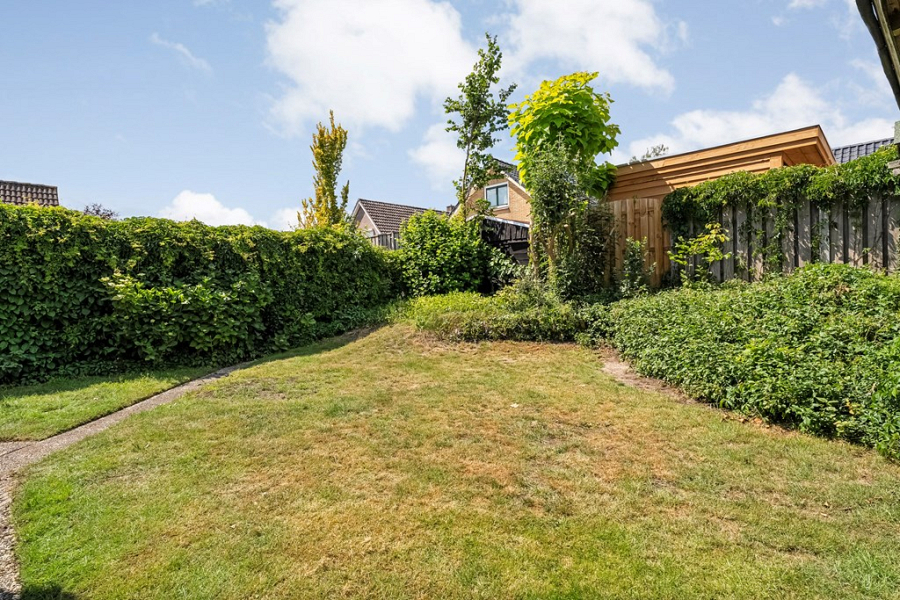 De tuin is een fijne, besloten plek met volop ruimte om te genieten van het buitenleven. Er is een terras waar je heerlijk zit in de zon of de schaduw, een groen gazon waar kinderen naar hartenlust kunnen spelen én een praktische tuinberging voor het opbergen van fietsen, tuingereedschap of speelgoed. Dankzij de ligging op het noordwesten geniet je hier vooral in de middag en avond van de zon, ideaal voor lange zomeravonden.