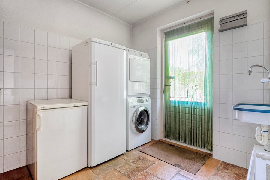 Aansluitend aan de keuken bevindt zich de praktische bijkeuken, waar je de aansluitingen voor het witgoed vindt. Vanuit de bijkeuken loop je bovendien direct de achtertuin in.