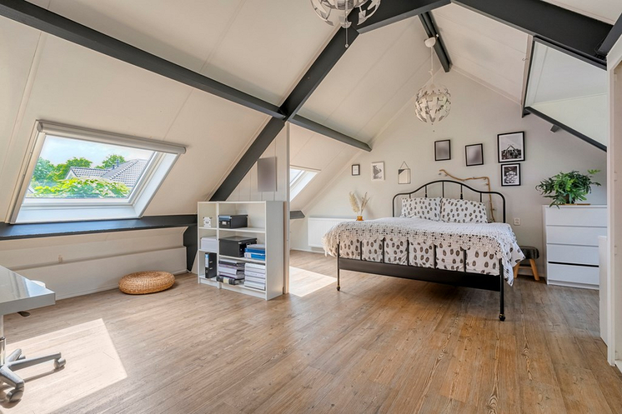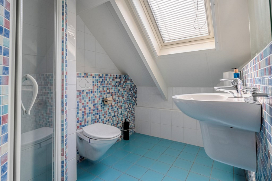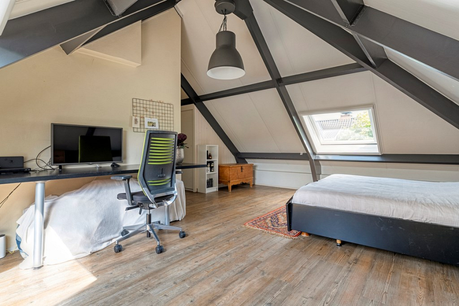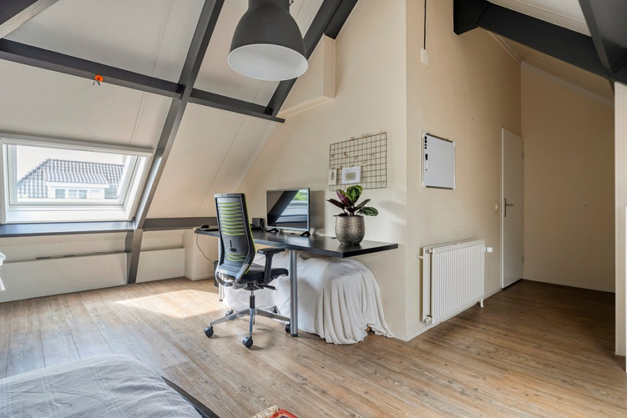 Op deze verdieping vind je twee zeer ruime slaapkamers, een separate badkamer met douche, wastafel en toilet, en een bergkamer waar zich de CV-ketel (2019) bevindt. Deze bergkamer kan eventueel ook uitstekend als extra kantoorruimte worden gebruikt.