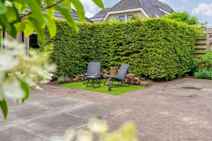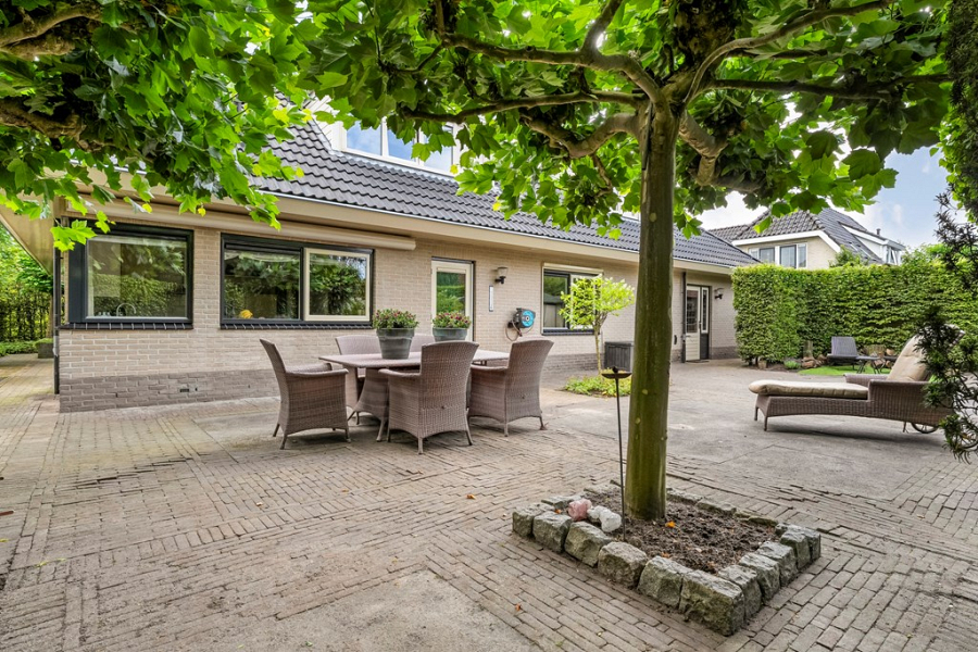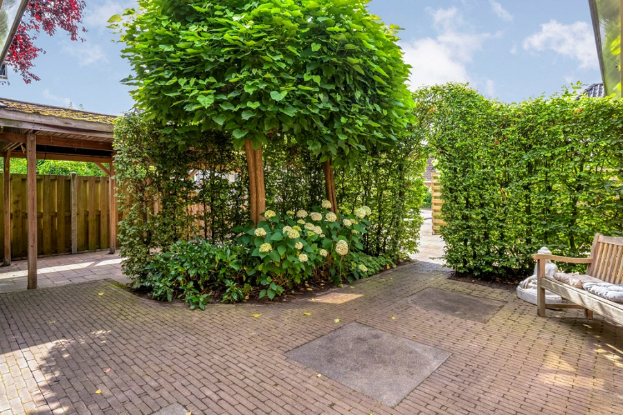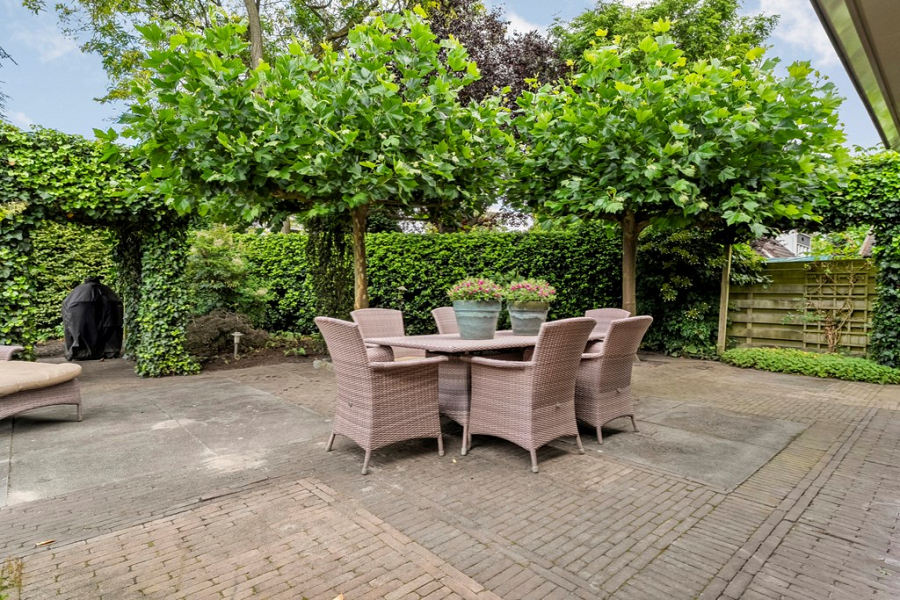 De tuin rondom de woning biedt volop privacy en ruimte. Er is altijd een fijn plekje in de zon of juist in de schaduw te vinden. Of je nu wilt relaxen met een goed boek, gezellig wilt barbecueën met vrienden of een groot gezelschap wilt ontvangen, hier kan het allemaal.