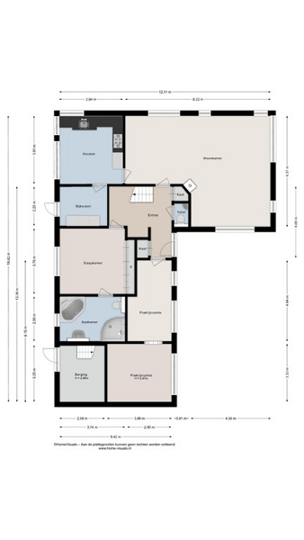 Bij binnenkomst kom je in de ruime hal met garderobe, het gastentoilet, de meterkast en een fraaie trapopgang naar de verdieping. Vanuit de hal kun je links naar de praktijkruimte of rechts naar het woongedeelte. Als je rechtdoor gaat kom je uit in de slaapkamer mét eigen badkamer op de begane grond.