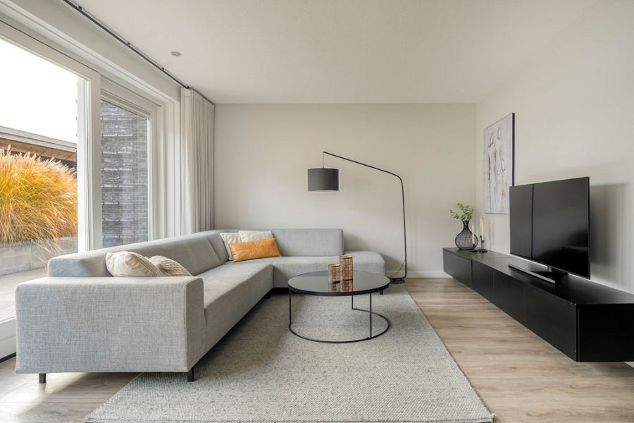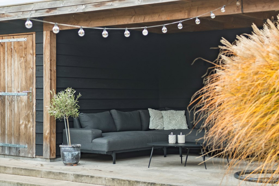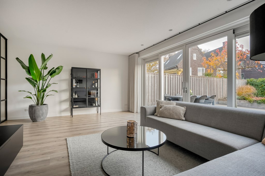 -Tuingerichte woonkamer met veel privacy aan de achterzijde