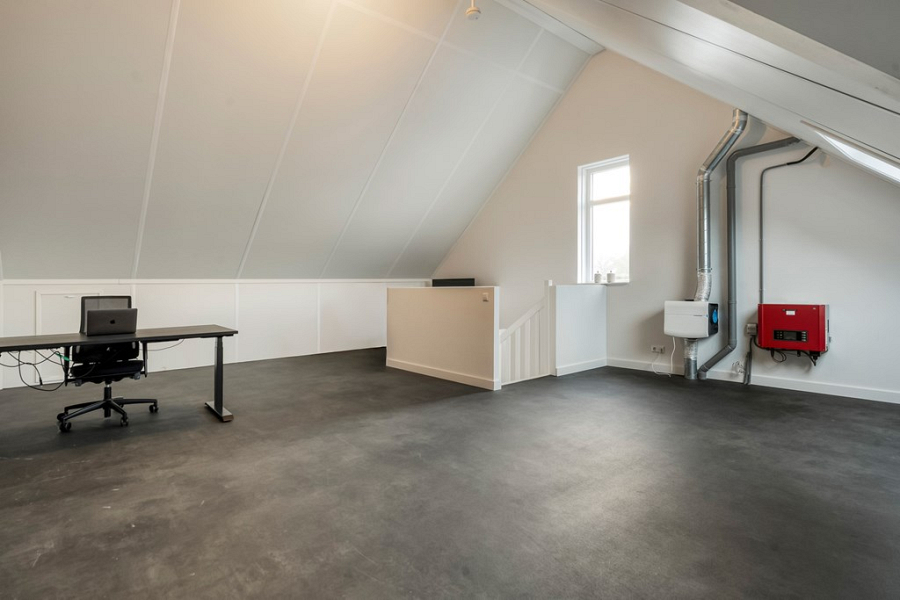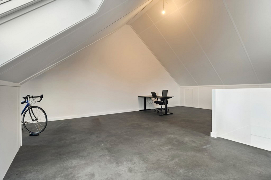 De tweede verdieping, bereikbaar via de trap op de overloop, is verrassend ruim en biedt volop mogelijkheden om deze geheel naar eigen wens in te delen, bijvoorbeeld voor extra slaapkamers. Dankzij het zijraam, voorraam en dakraam is er veel daglicht en achter de schuine kanten is voldoende bergruimte aanwezig. Deze verdieping is bovendien voorzien van elektrische verwarming.