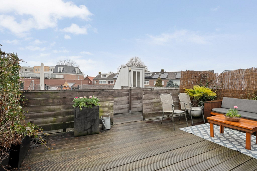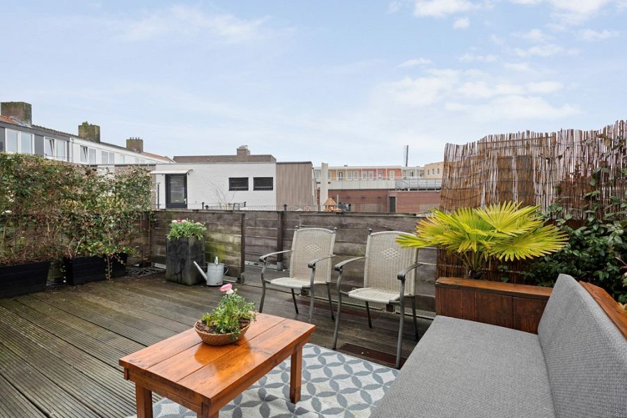 -Gezellig dakterras op het westen, fraai aangelegd met vlonders