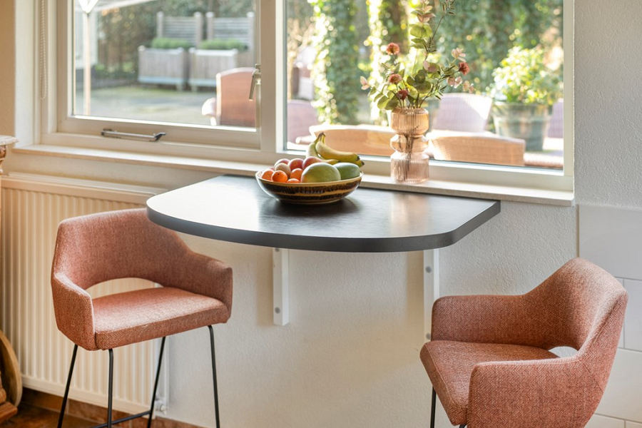 Aansluitend aan de keuken bevindt zich de praktische bijkeuken, waar je de aansluitingen voor het witgoed vindt. Vanuit de bijkeuken loop je bovendien direct de achtertuin in.