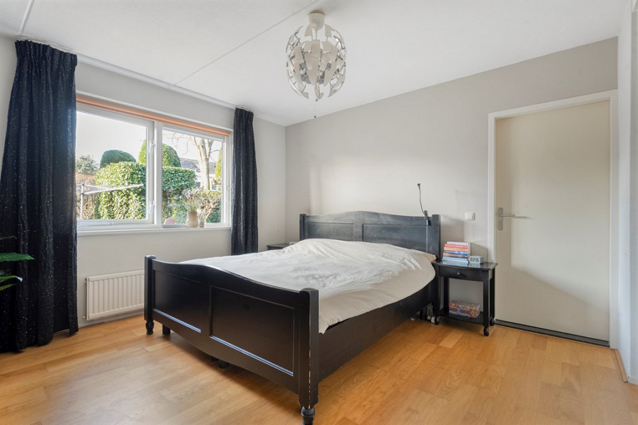 Via de woonkamer ga je terug naar de hal. Via de hal bereik je de royale slaapkamer op de begane grond, waardoor de woning levensloopbestendig is. Deze slaapkamer beschikt over een zeer ruime badkamer, compleet uitgerust met een toilet, een hoekbad, een aparte douchehoek en een wastafel. De badkamer is functioneel en voor wie dat wil, zijn er in de toekomst volop mogelijkheden om deze ruimtes te moderniseren. Maar zo geniet je van alle comfort op één verdieping en kun je hier met gemak en plezier blijven wonen.